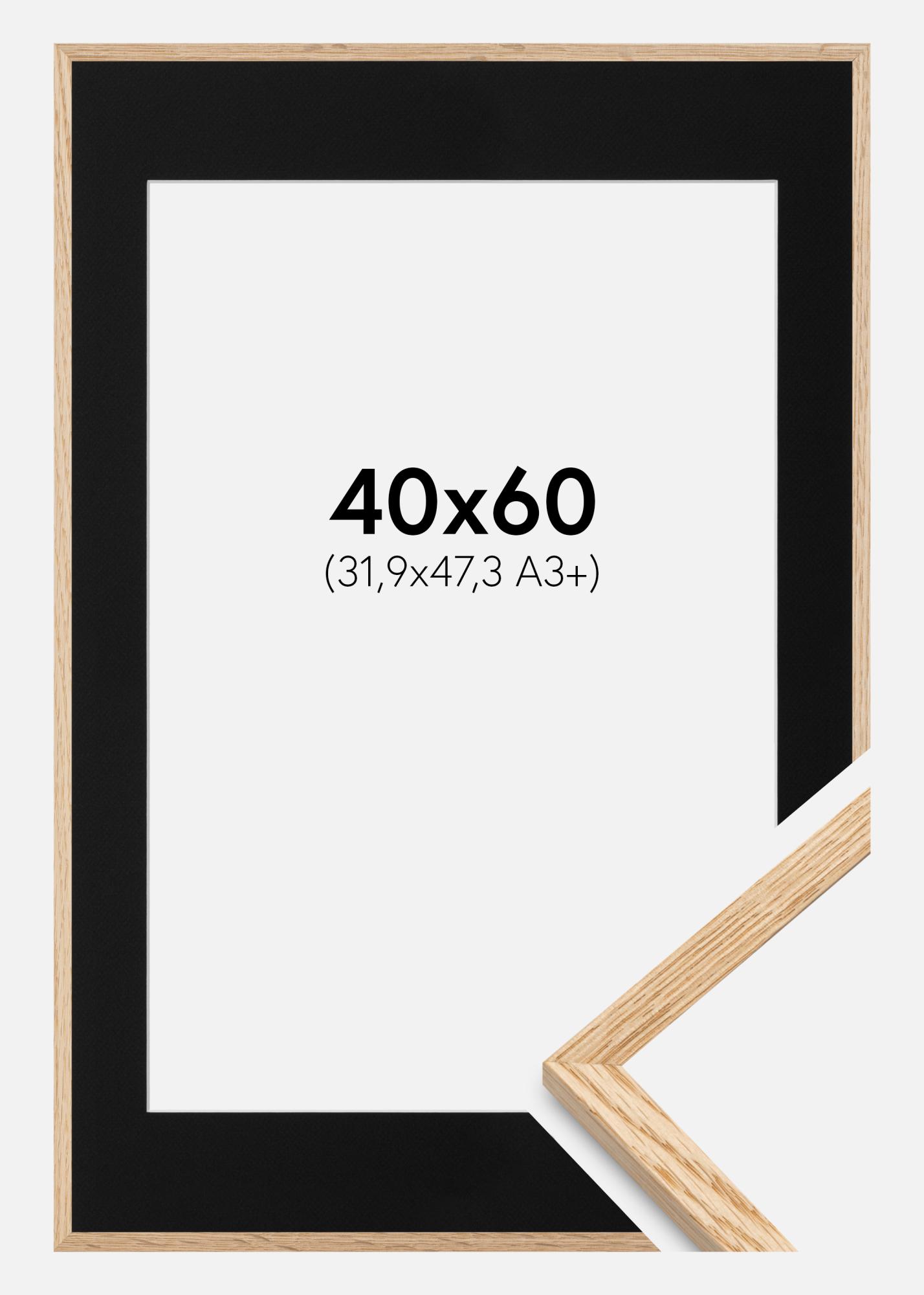 Ramă Stejar subțire 40x60 cm - Paspartu Negru 32,9x48,3 cm (A3+)
