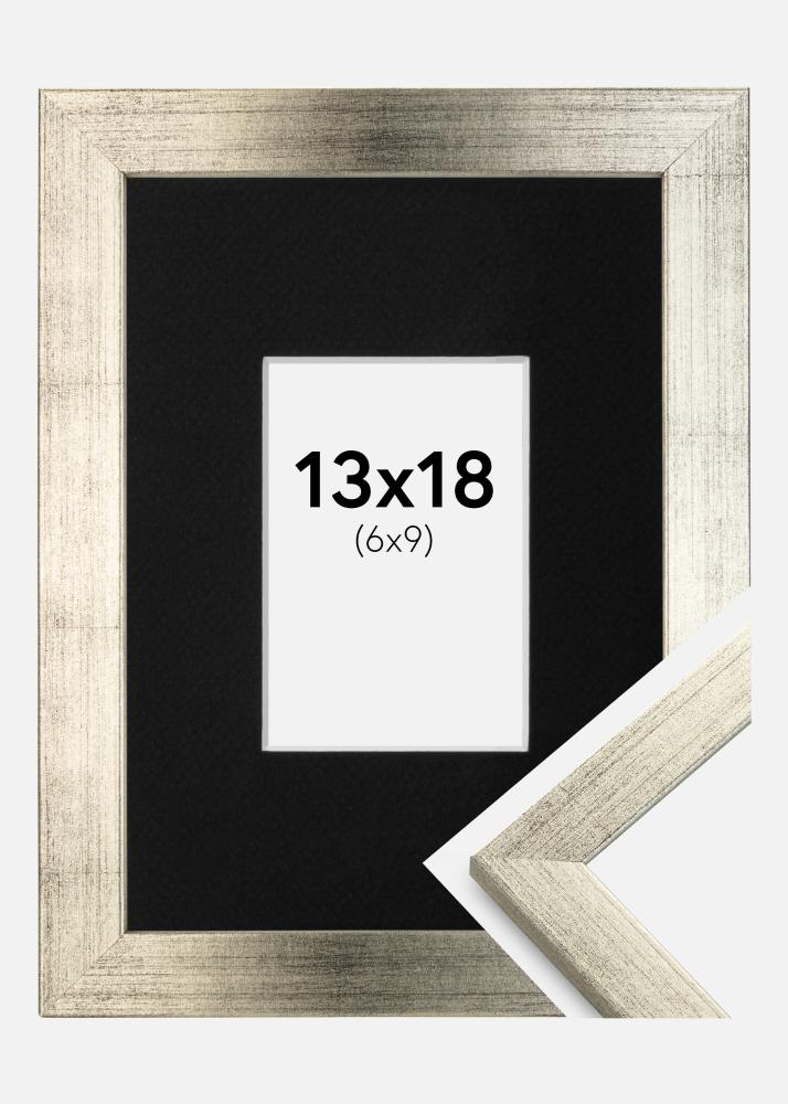Ramă Stilată Argintiu 13x18 cm - Paspartu Negru 7x10 cm