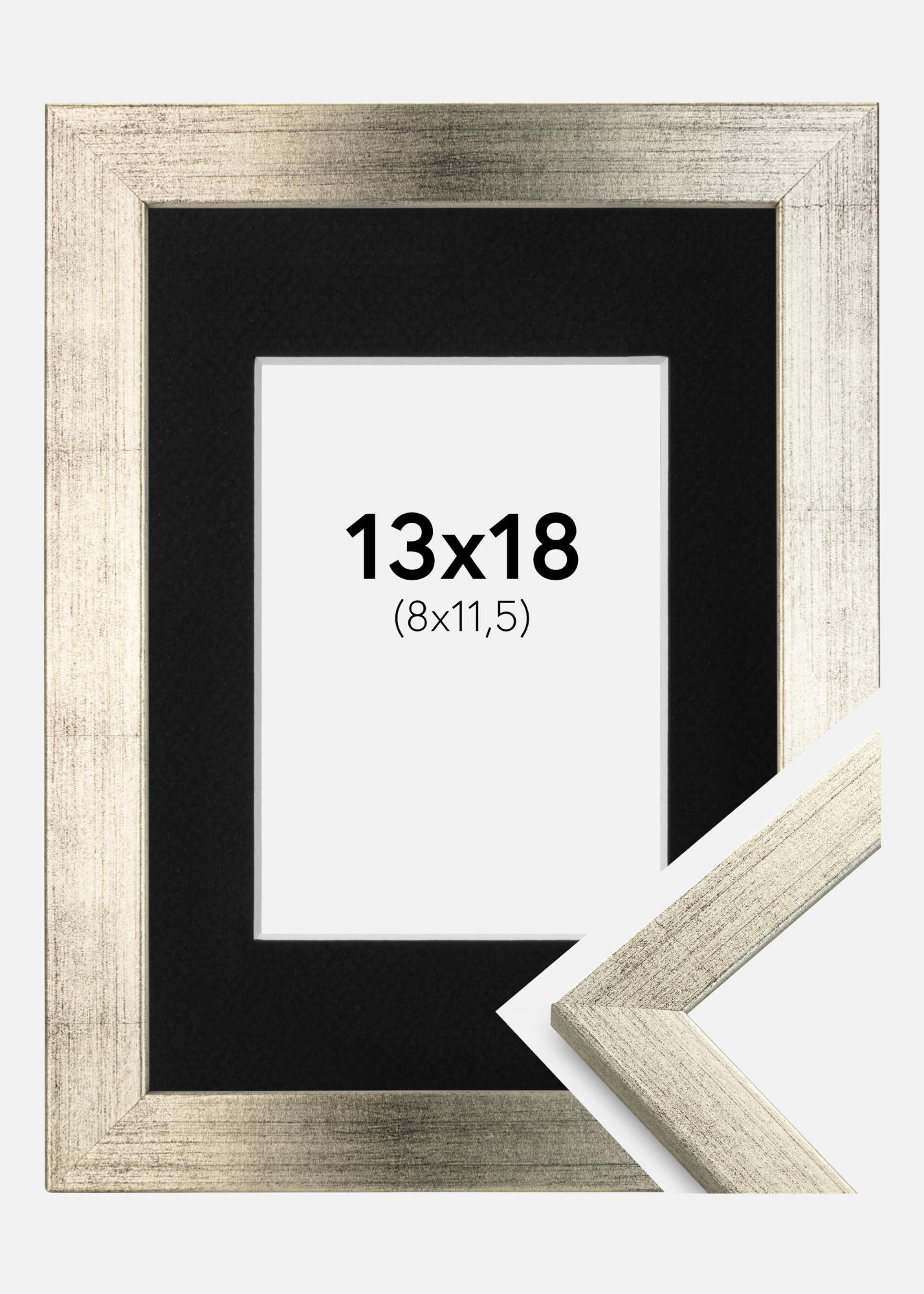 Ramă Stilată Argintiu 13x18 cm - Paspartu Negru 9x12 cm