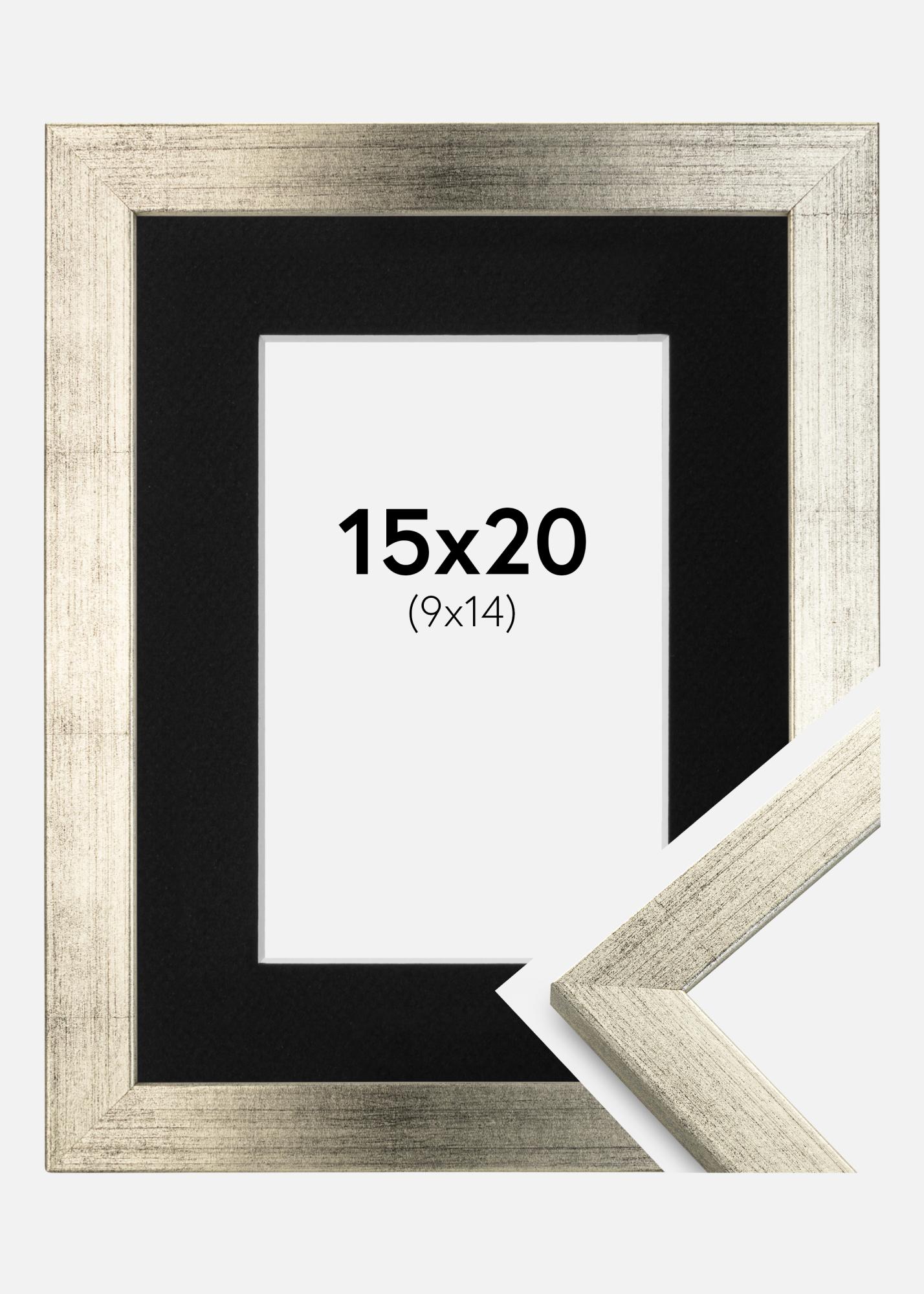 Ramă Stilată Argintiu 15x20 cm - Paspartu Negru 10x15 cm