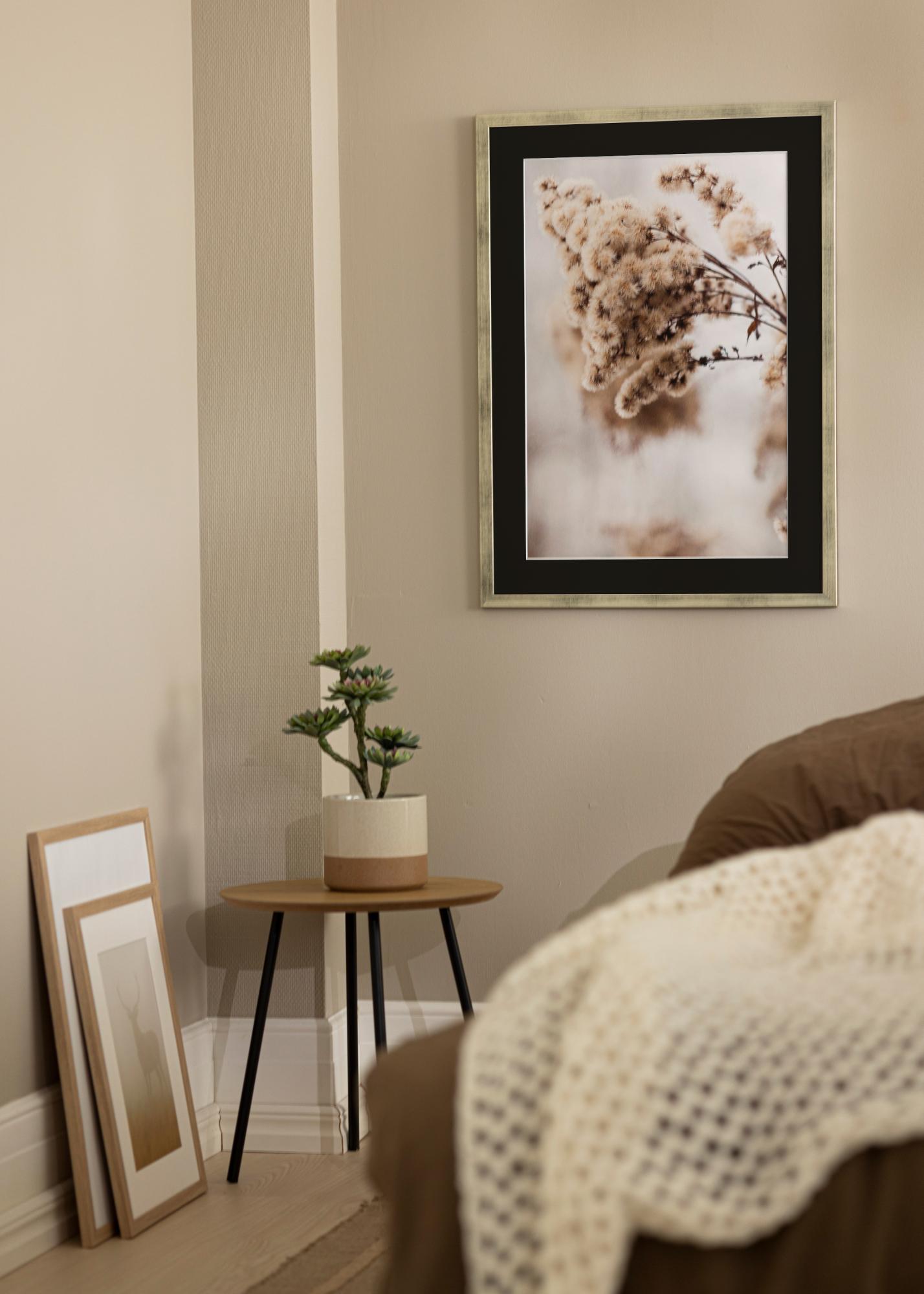 Passepartout-ul negru completează culoarea argintie a ramei și evidențiază motivul într-un mod sofisticat. Rama este, de asemenea, echipată cu agățători metalice practice pentru o agățare ușoară.