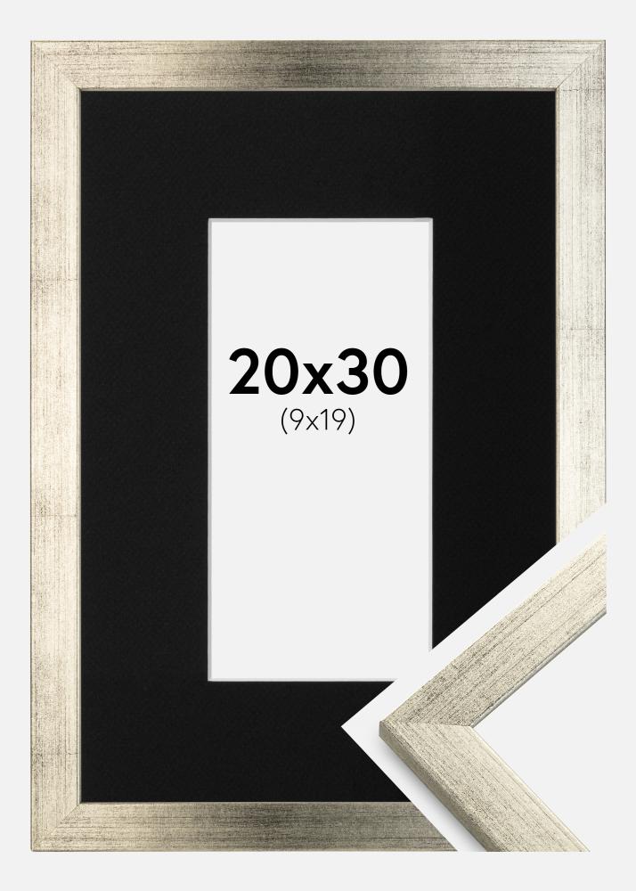 Ramă Stilată Argintiu 20x30 cm - Paspartu Negru 10x20 cm