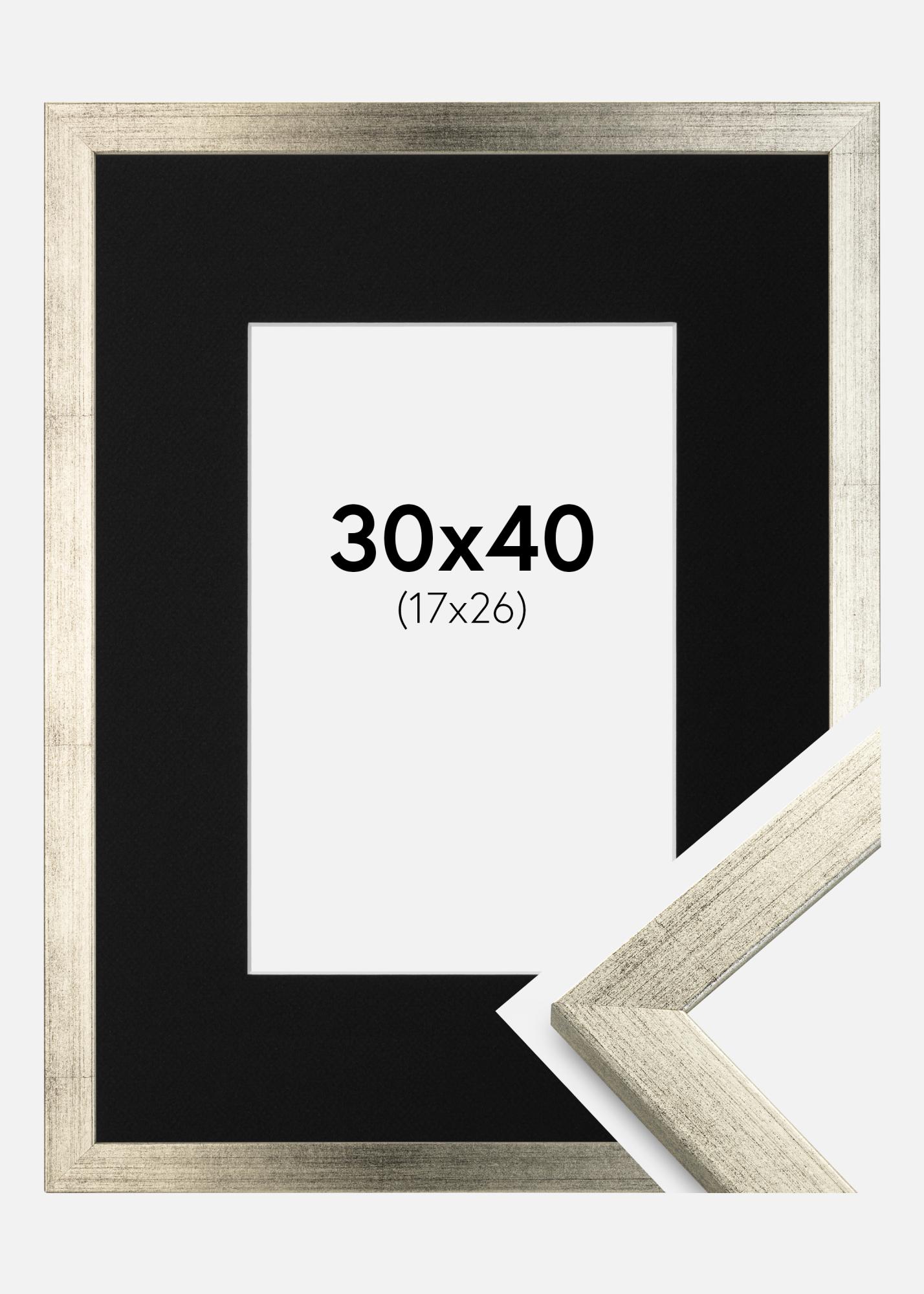 Ramă Stilată Argintiu 30x40 cm - Paspartu Negru 18x27 cm