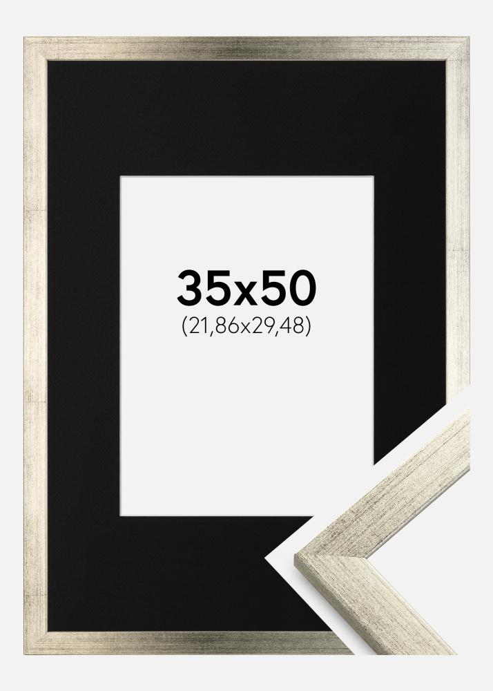 Ramă Stilată Argintiu 35x50 cm - Paspartu Negru 9x12 inches