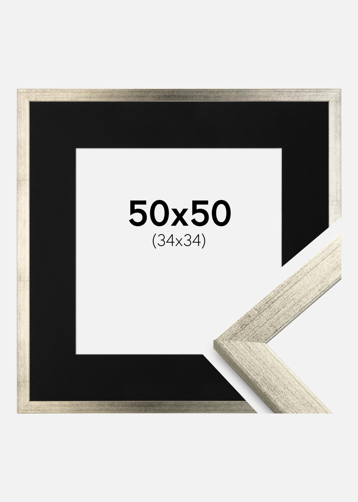 Ramă Stilată Argintiu 50x50 cm - Paspartu Negru 35x35 cm