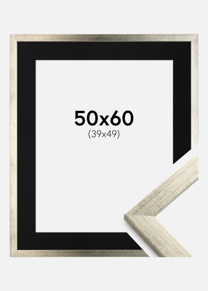 Ramă Stilată Argintiu 50x60 cm - Paspartu Negru 40x50 cm