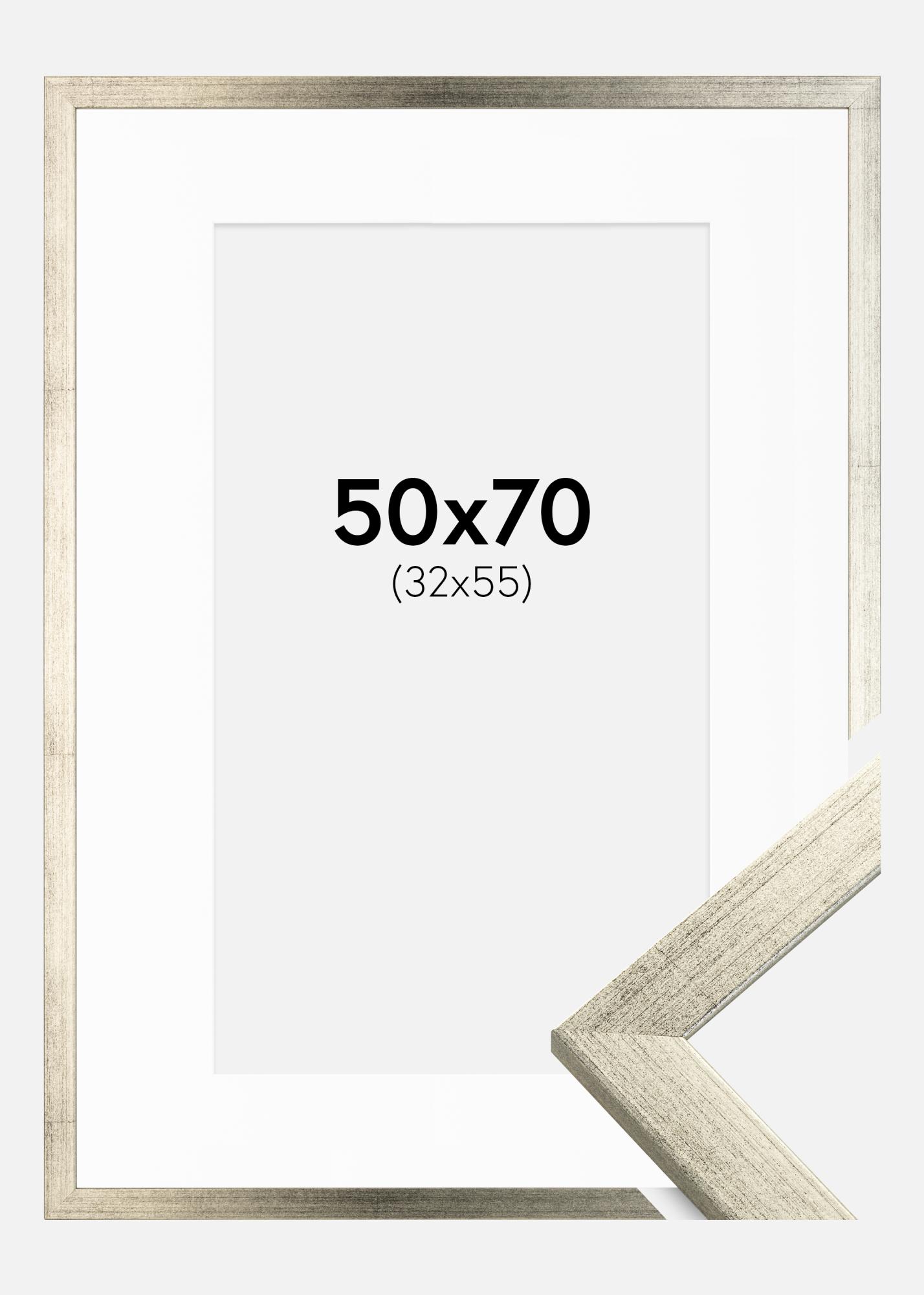 Ramă Stilată Argintiu 50x70 cm - Paspartu Alb 33x56 cm