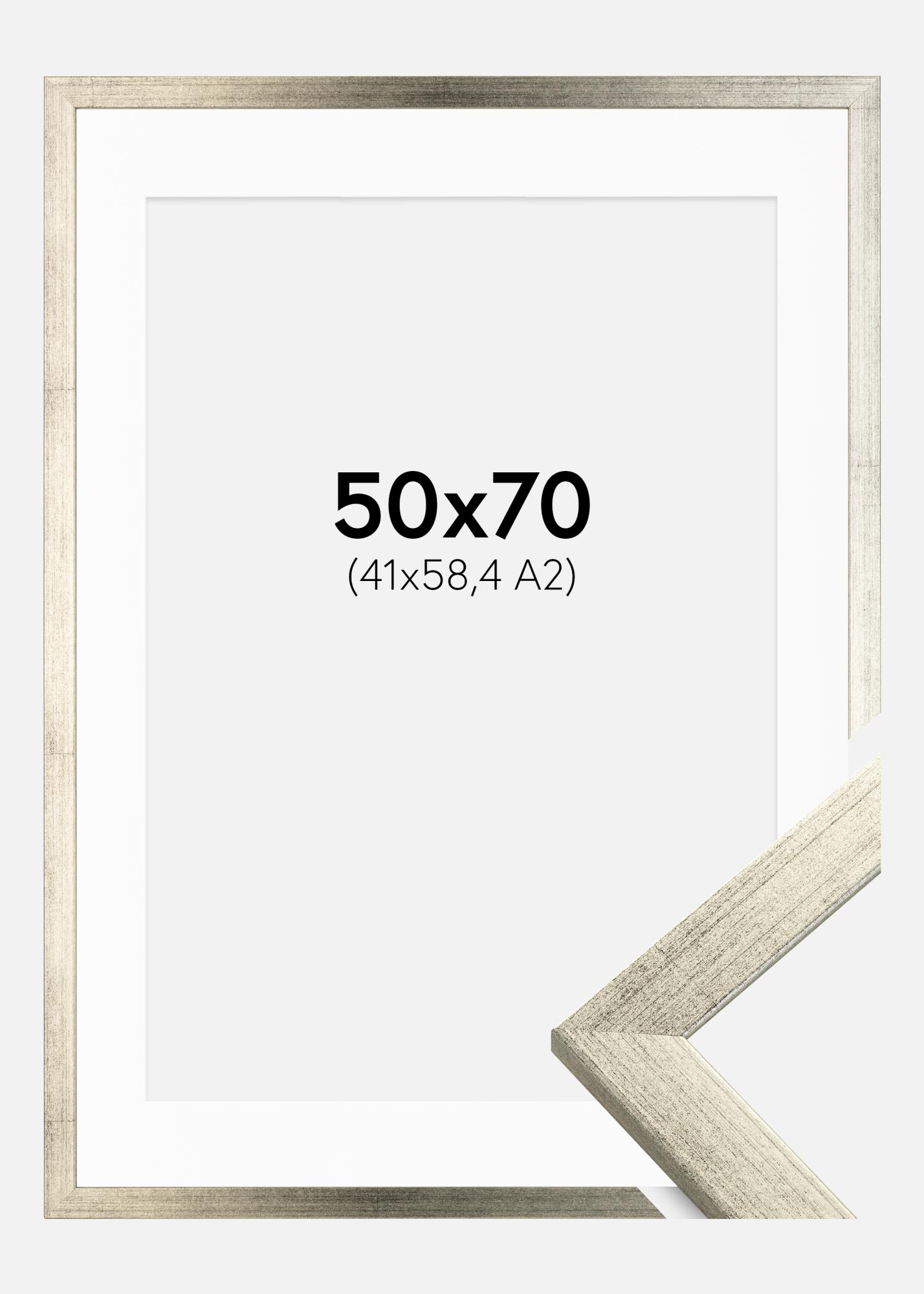 Ramă Stilată Argintiu 50x70 cm - Paspartu Alb 42x59,4 cm (A2)