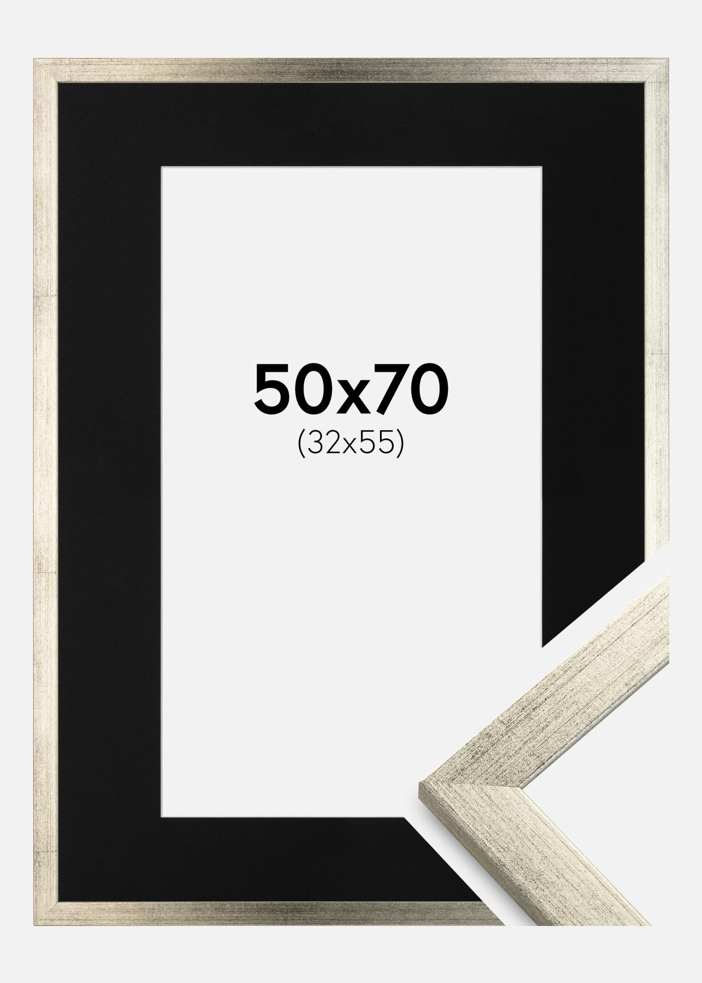 Ramă Stilată Argintiu 50x70 cm - Paspartu Negru 33x56 cm