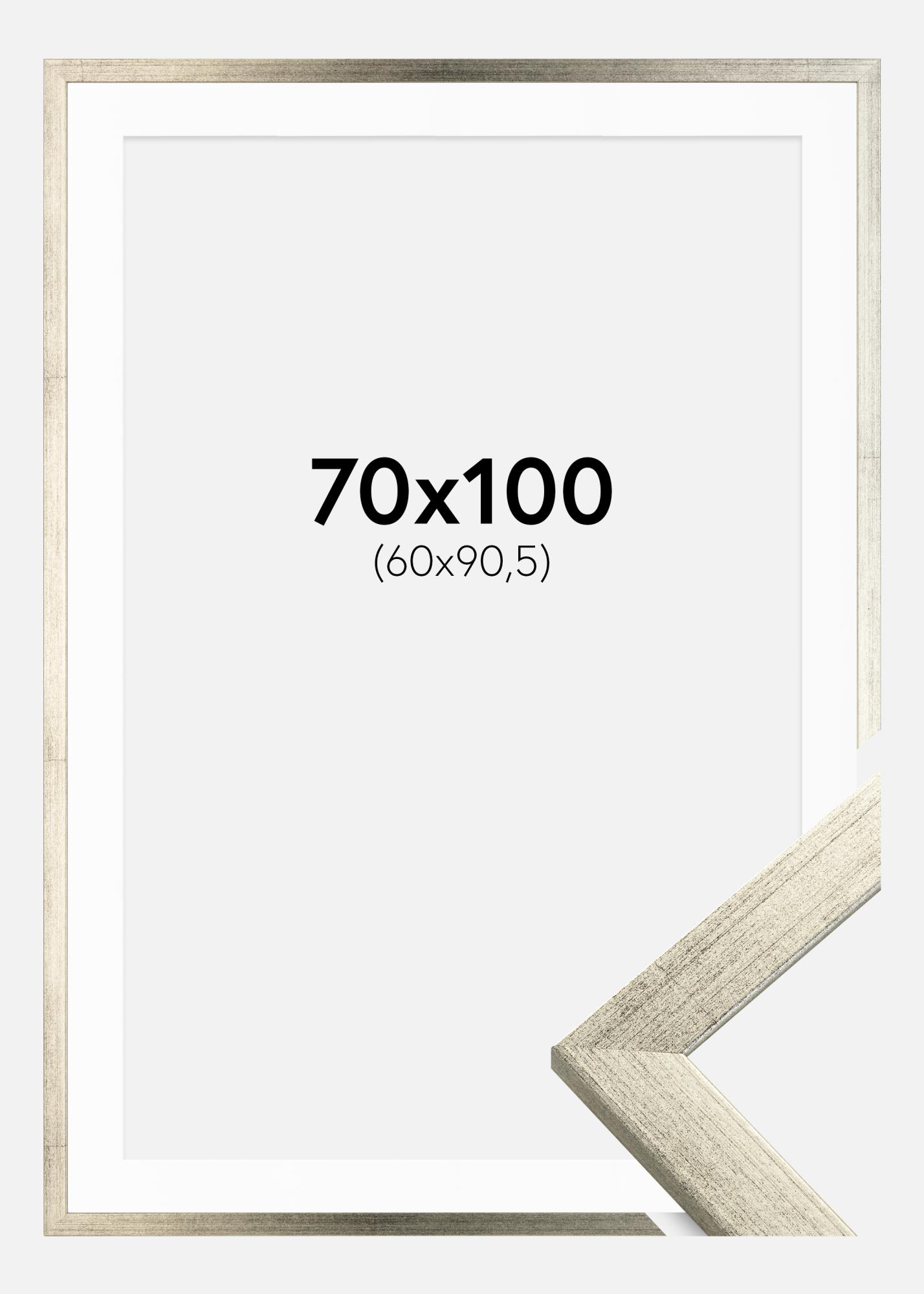 Ramă Stilată Argintiu 70x100 cm - Paspartu Alb 61x91,5 cm