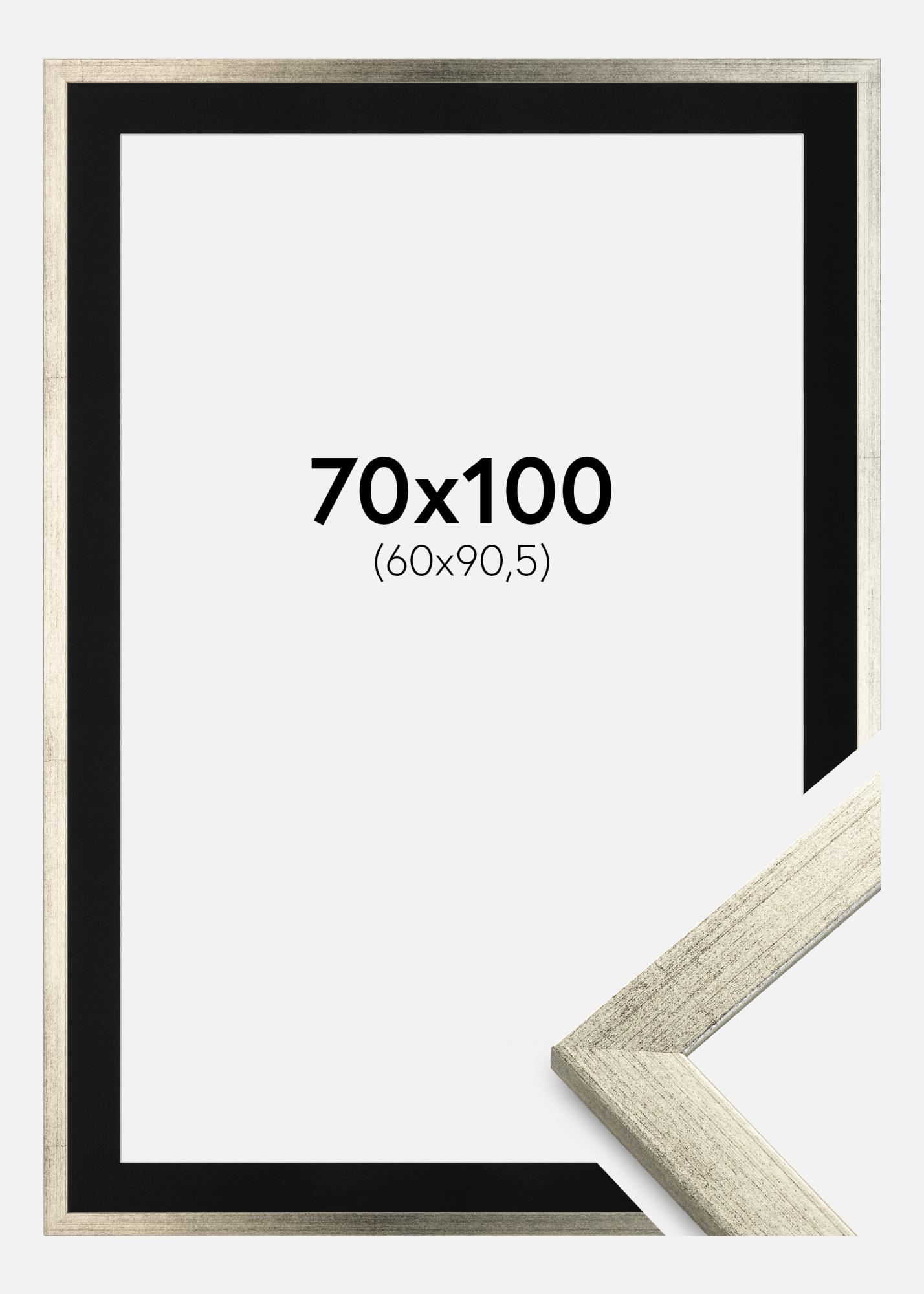 Ramă Stilată Argintiu 70x100 cm - Paspartu Negru 61x91,5 cm