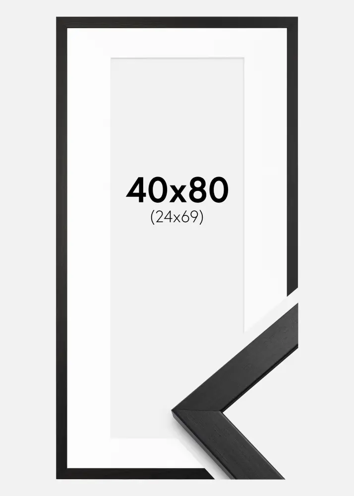 Ramă Stilată Negru 40x80 cm - Paspartu Alb 25x70 cm