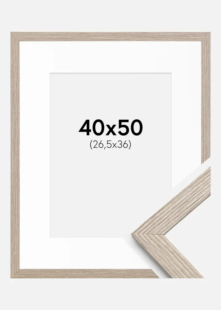 Ramă Stilren Greige Stejar 40x50 cm - Paspartuuri Alb 27,5x37 cm