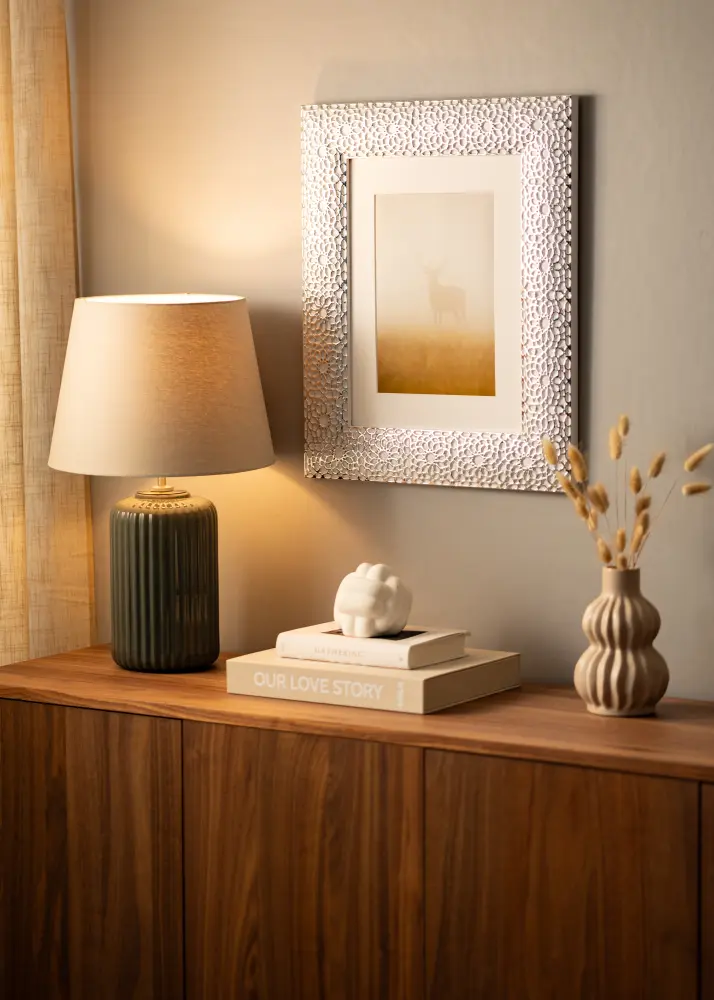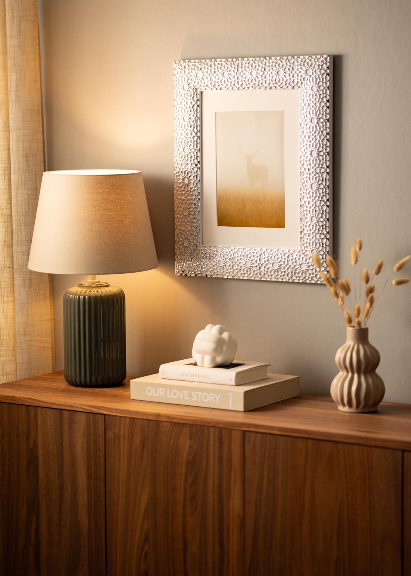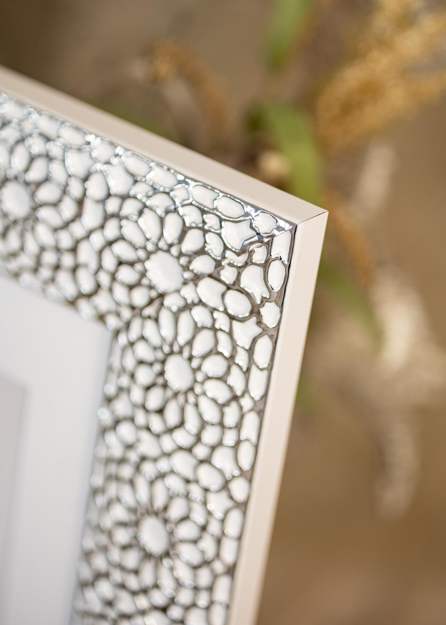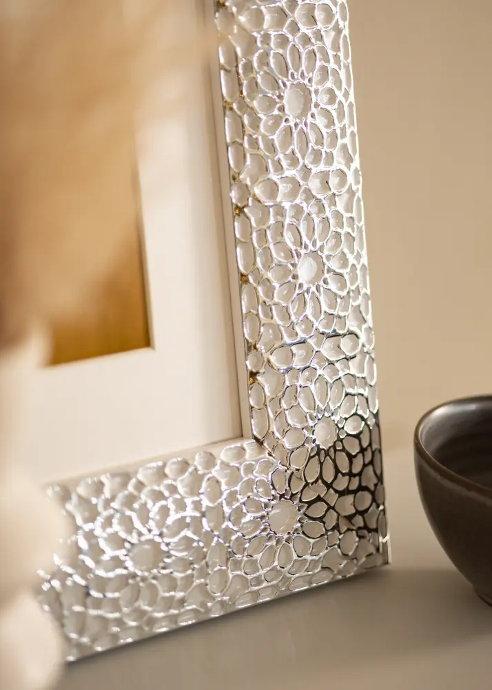 "Stockholm Alb" este cel mai bine rezumat ca lux și eleganță la cel mai înalt nivel. Cu designul său unic și de lux în alb și cu acoperire argintie ornamentată, acesta este un cadru pentru cei care doresc cu adevărat ceva unic care să iasă în evidență! Perfect pentru portrete mari și fotografii de nuntă.