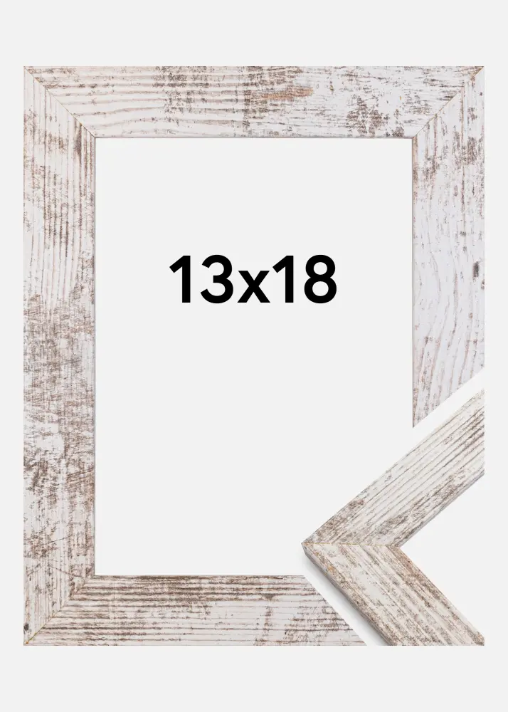 Cadrul vintage elegant cu un profil de ramă larg cu un aspect uzat în alb și lemn. Oferă o dimensiune suplimentară imaginilor tale și se potrivește perfect atunci când dorești o ramă cu adevărat vintage.