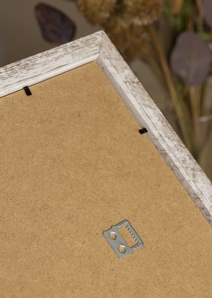 Ramă vintage elegantă cu un profil larg și un aspect uzat în alb și lemn. Oferă o dimensiune suplimentară imaginilor tale și se potrivește perfect atunci când dorești o ramă cu adevărat senzație vintage.