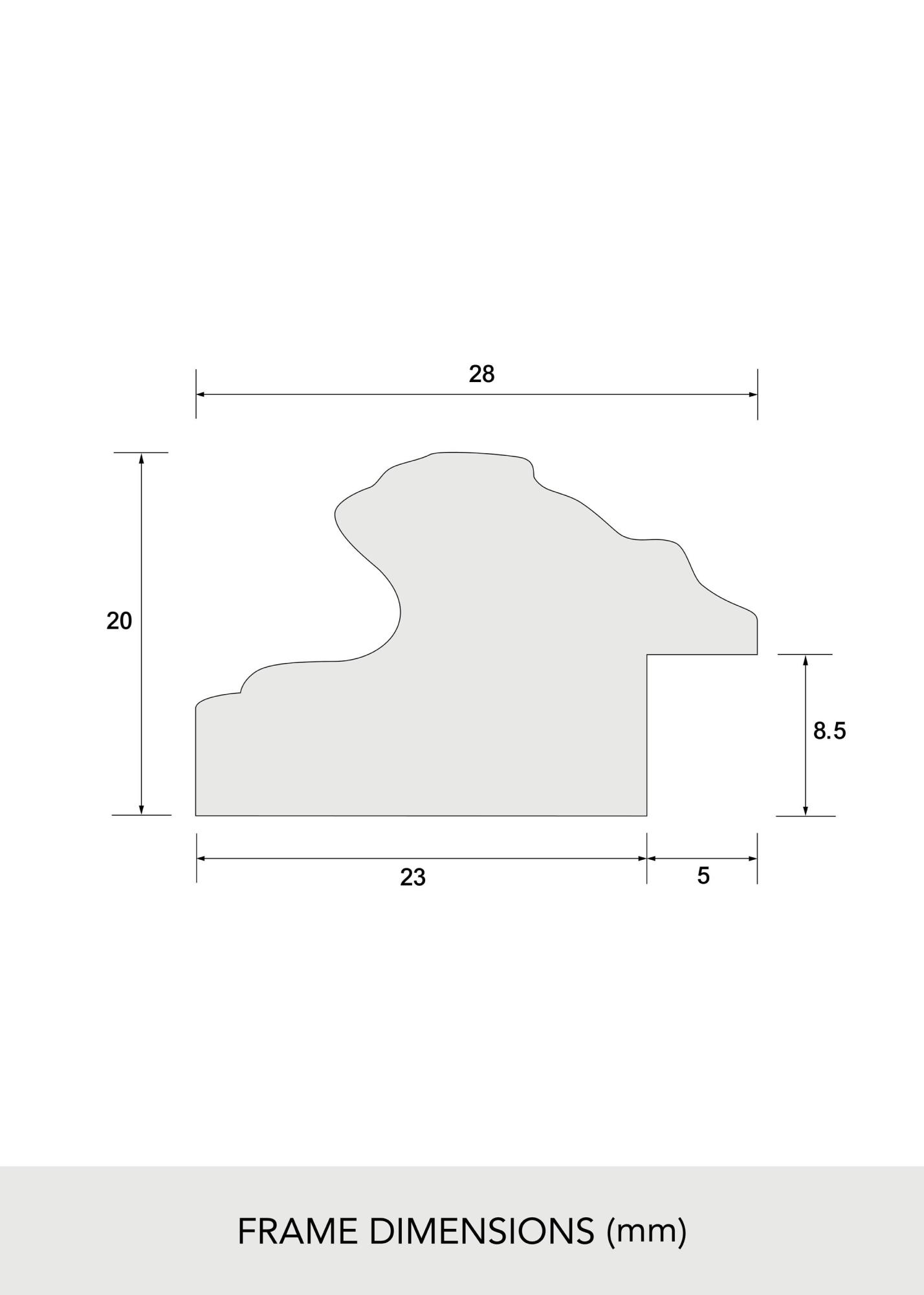 Rama este fabricată din materiale compozite, ceea ce îi conferă o structură ușoară și durabilă. Cu o listă de rame de 28 mm lățime și o adâncime de 20 mm, această ramă oferă o încadrare robustă care scoate într-adevăr în evidență motivul tău. Este echipată cu cârlige metalice pe partea din spate, făcându-se ușor de agățat atât orizontal, cât și vertical, în funcție de ceea ce se potrivește cel mai bine spațiului tău.