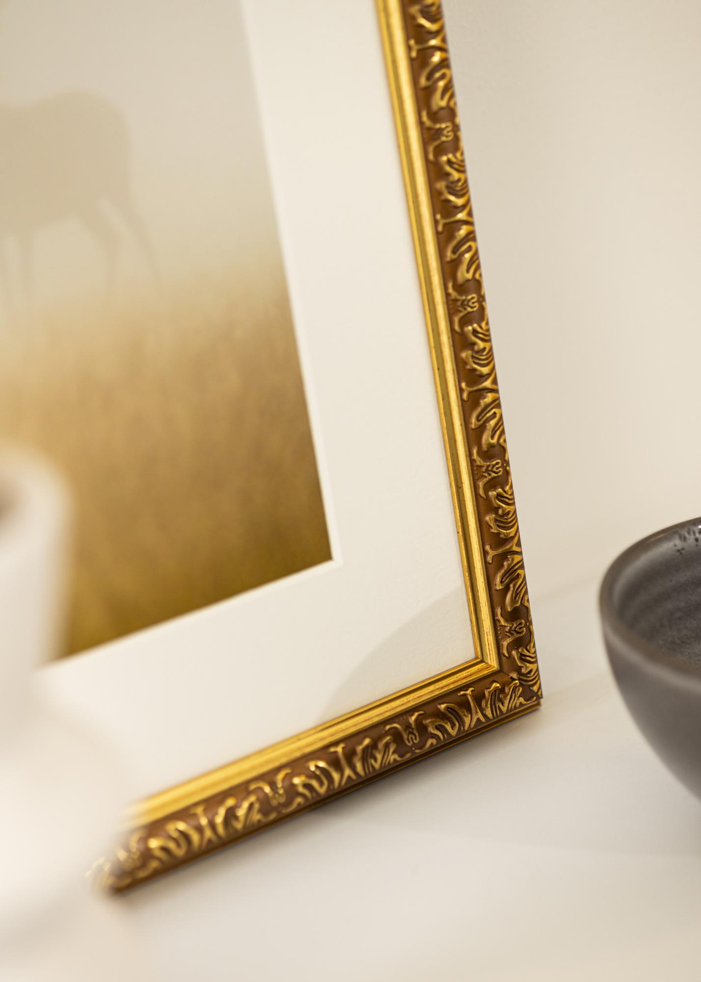 Această ramă foto aurie este o combinație perfectă de eleganță clasică și funcționalitate modernă. Cu dimensiunea sa de 30x40 cm, este ideală pentru a evidenția motivele tale preferate, fie că este vorba de opere de artă sau fotografii. Finisajul auriu luxos și detaliile ornamentale și decorative de-a lungul marginii interioare a ramei adaugă o notă sofisticată care se potrivește excelent atât în stiluri de decor clasice, cât și elegante.