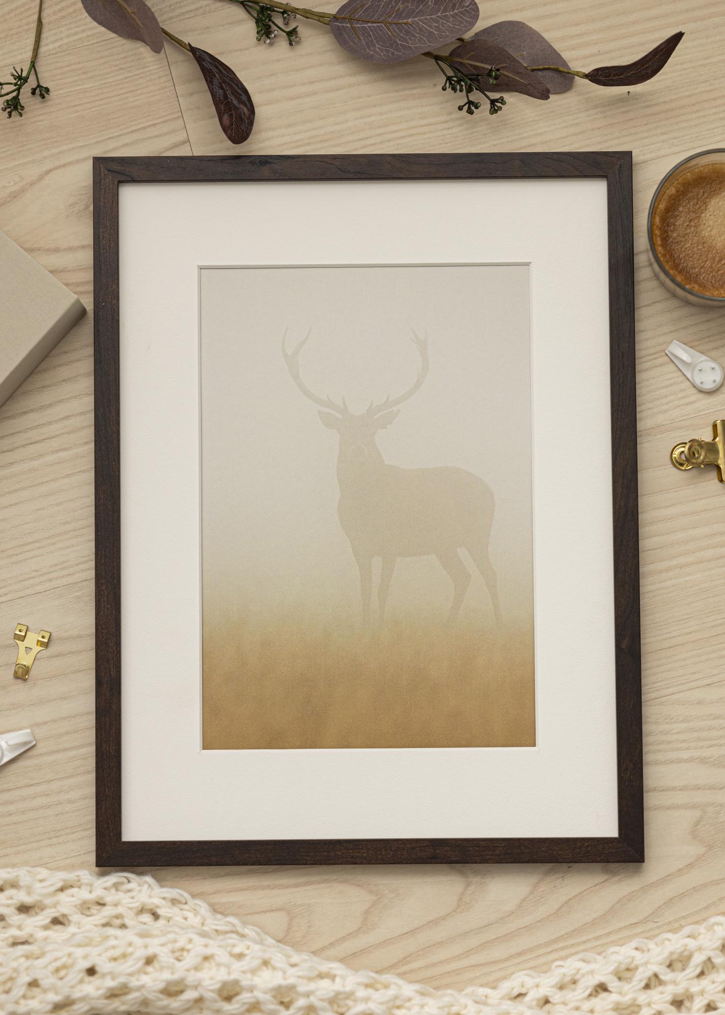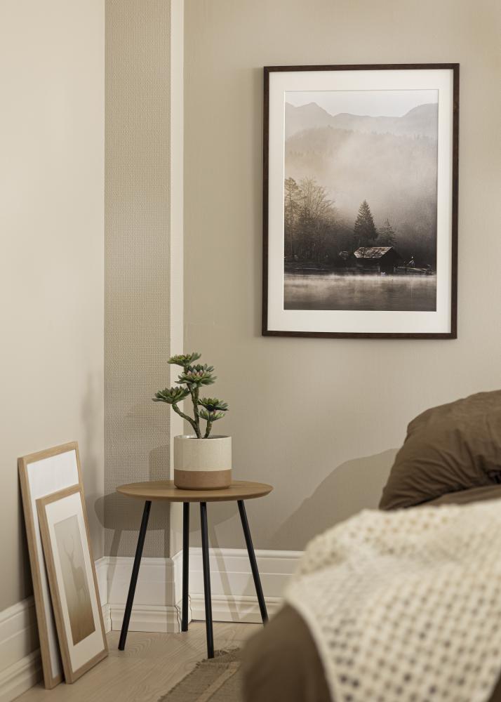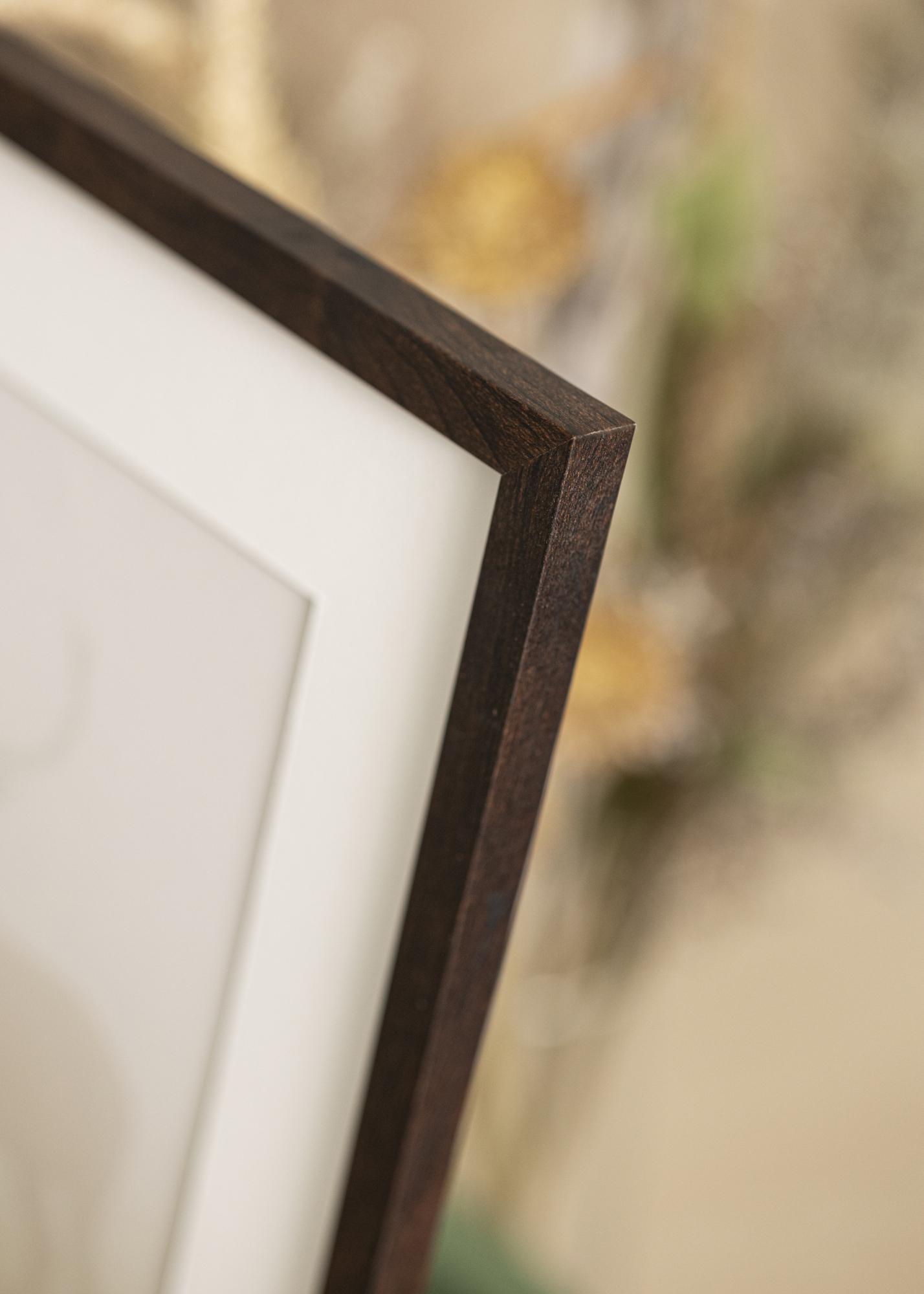 O ramă în nuanțe de lemn de nuc oferă motivelor tale o încadrare naturală cu o eleganță deosebită. Acesta este un model cu o ramă lată de 14 mm cu profil pătrat clasic și sticlă acrilică clară. Sticla acrilică este o variantă de sticlă care este incasabilă și ușoară, ceea ce face ca aceasta să fie o ramă potrivită pentru cei care doresc o suspendare mai ușoară.