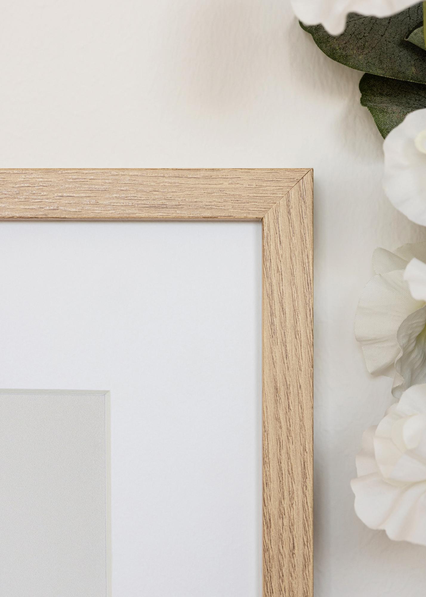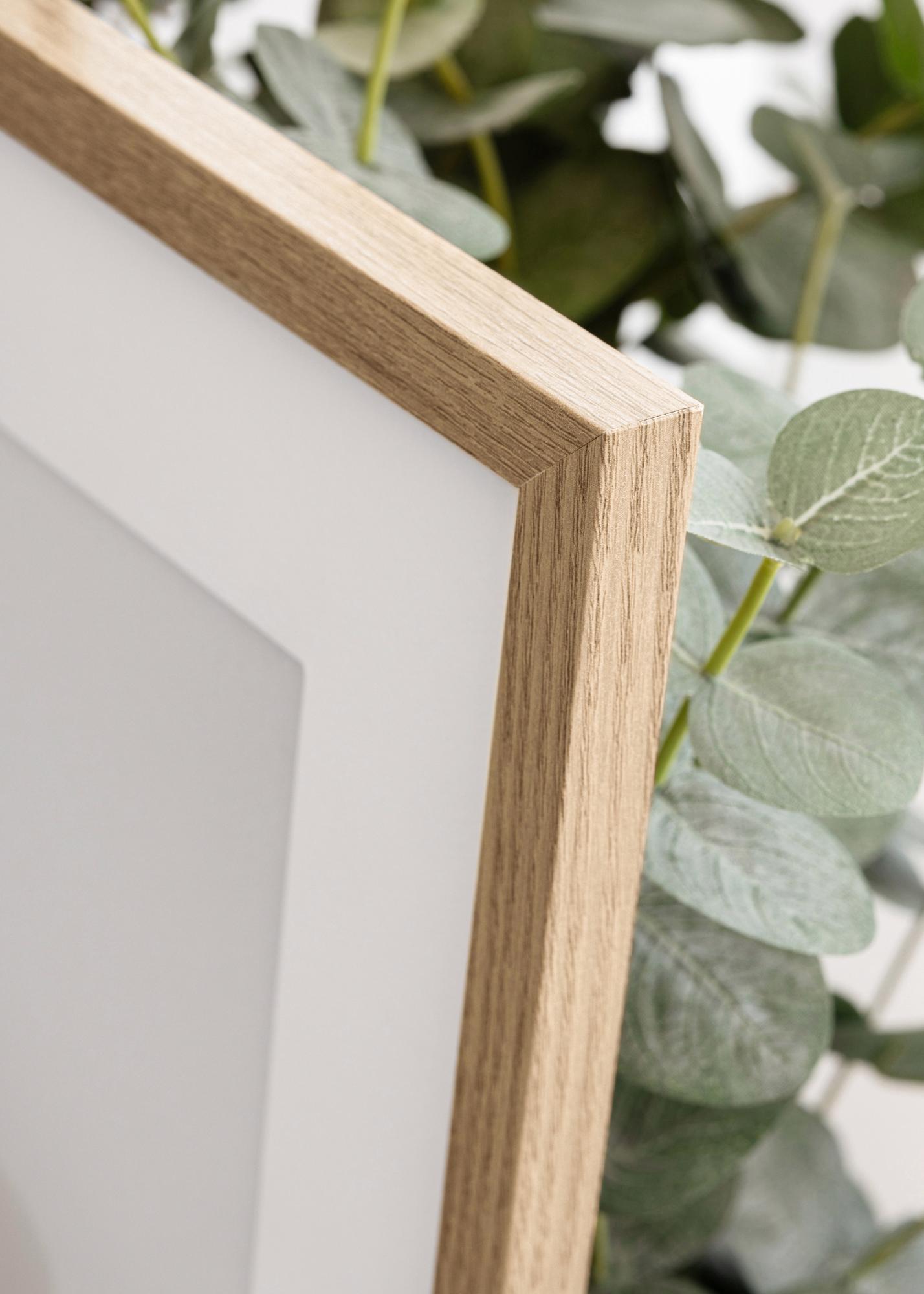 Rama este fabricată din MDF cu o suprafață de folie în culoarea stejarului și are un profil subțire de ramă de 14 mm. Există suficient spațiu pentru a completa imaginile cu un passepartout de lux, datorită adâncimii interioare (adâncimea rebateului) de 12 mm a ramei.