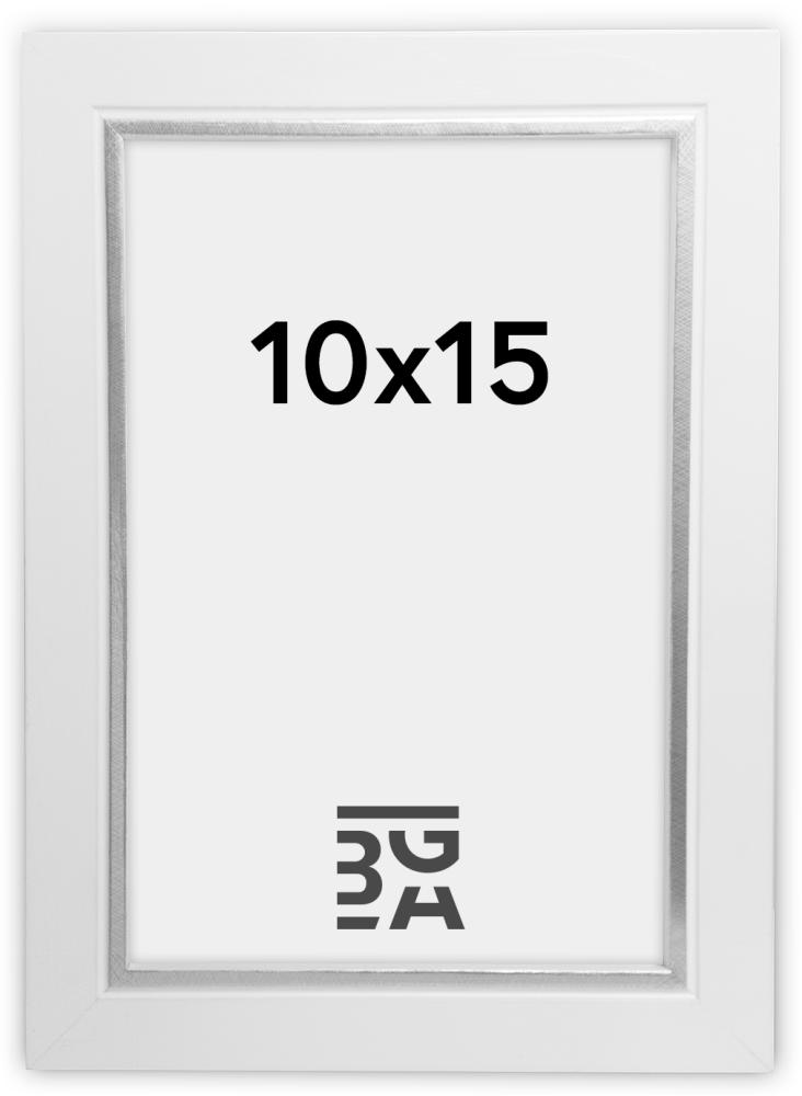 Elegantă ramă foto albă din lemn, cu un mic "Twist" suplimentar sub forma unei margini frumoase argintii aproape de motiv. O ramă perfectă pentru fotografii portret. Perfect de plasat pe o poliță de tablouri pentru un colaj elegant.