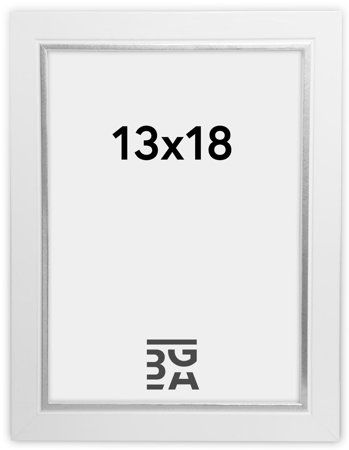 Ramă foto elegantă albă din lemn cu un mic "Twist" suplimentar sub formă de margine argintie frumoasă aproape de motiv. O ramă perfectă pentru portrete. Perfectă de așezat pe un raft pentru tablouri pentru un colaj frumos.