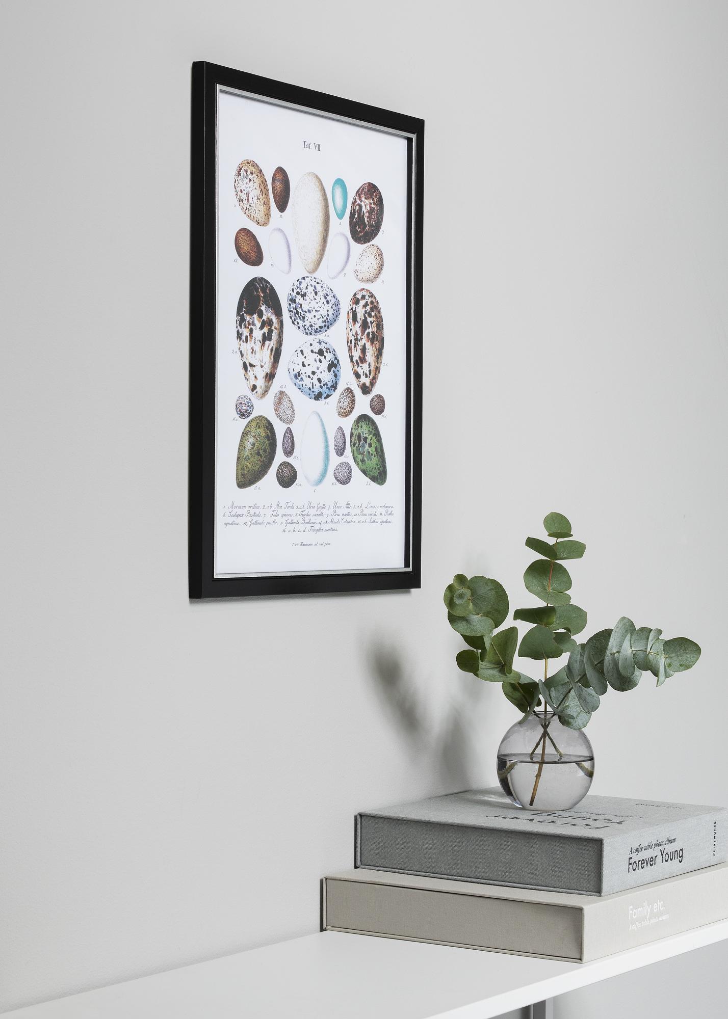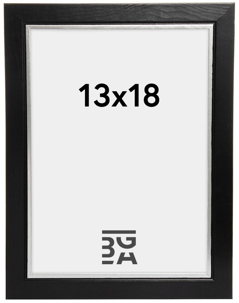 Ramă foto exclusivă din lemn negru cu un mic "twist" suplimentar sub formă de o margine frumoasă de culoare argintie lângă motiv. O alegere excelentă atunci când cauți o ramă care oferă o dimensiune suplimentară motivului. Perfect pentru a fi plasată pe un raft de tablouri pentru un colaj elegant.