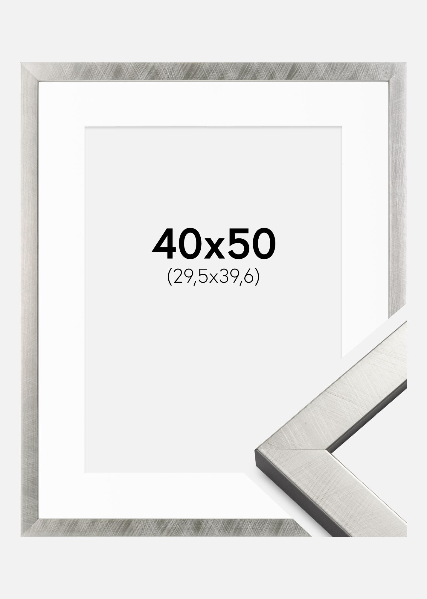 Ramă Uppsala Argintiu 40x50 cm - Paspartu Alb 12x16 inches