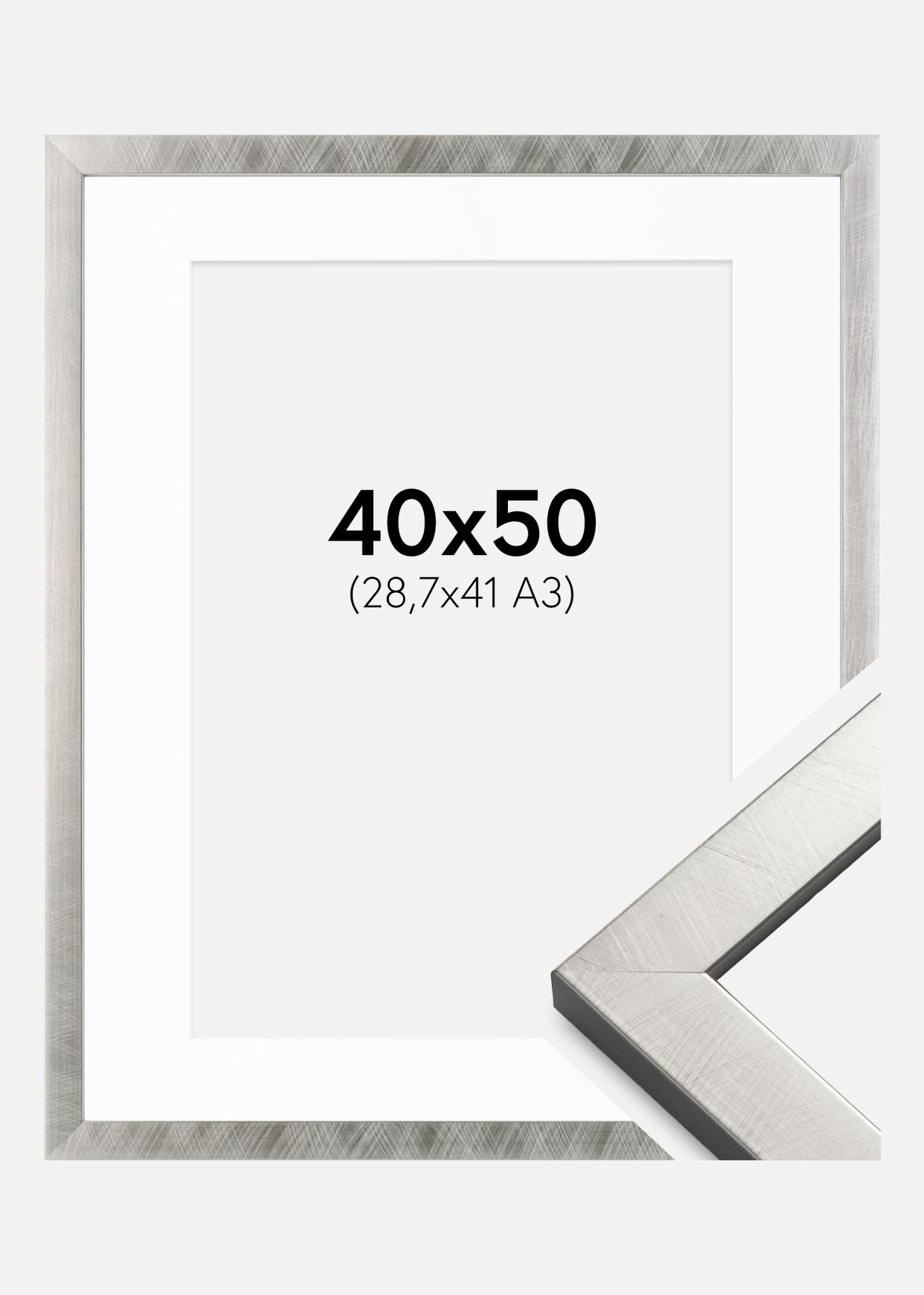 Ramă Uppsala Argintiu 40x50 cm - Paspartu Alb 29,7x42 cm (A3)