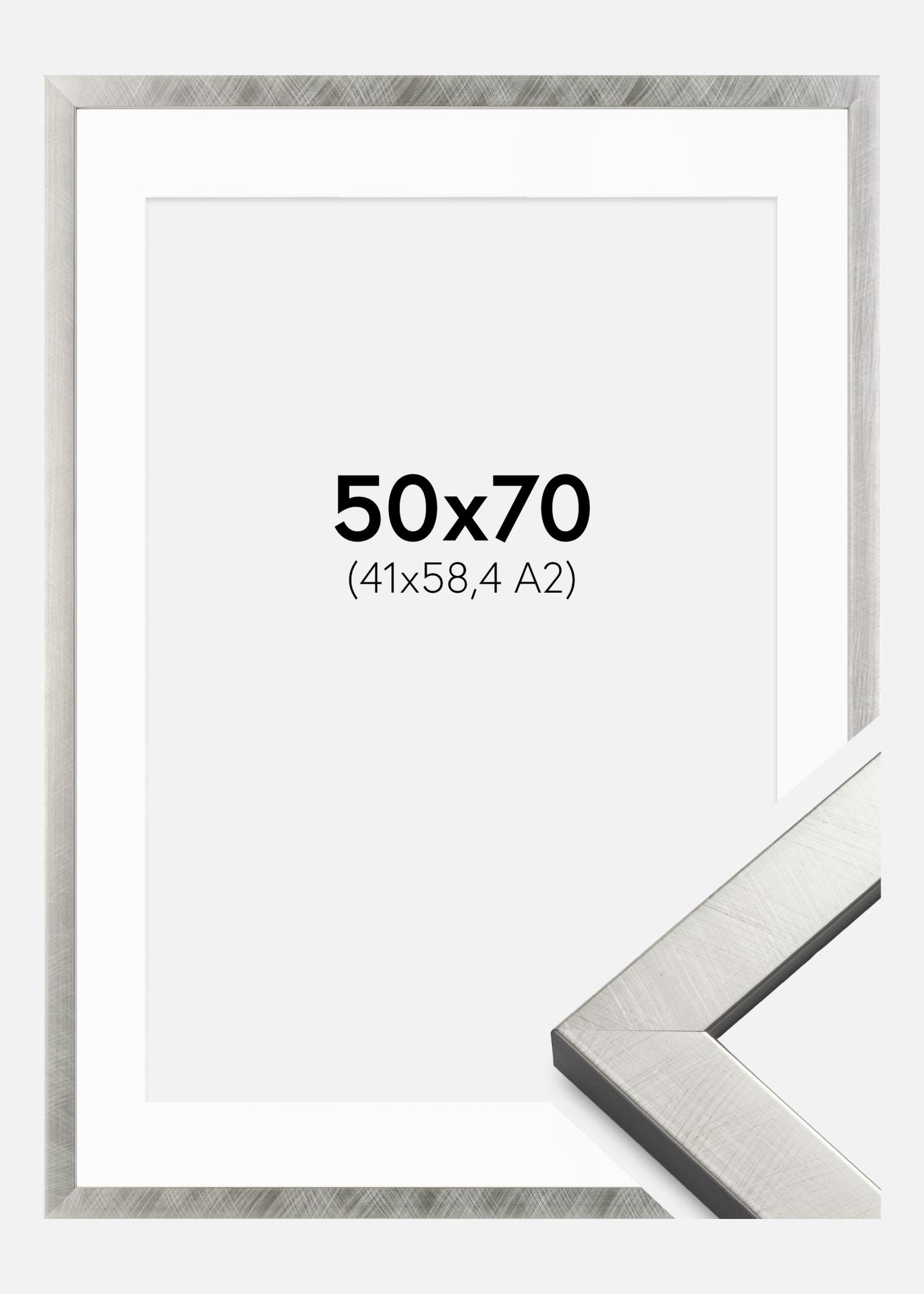 Ramă Uppsala Argintiu 50x70 cm - Paspartu Alb 42x59,4 cm (A2)