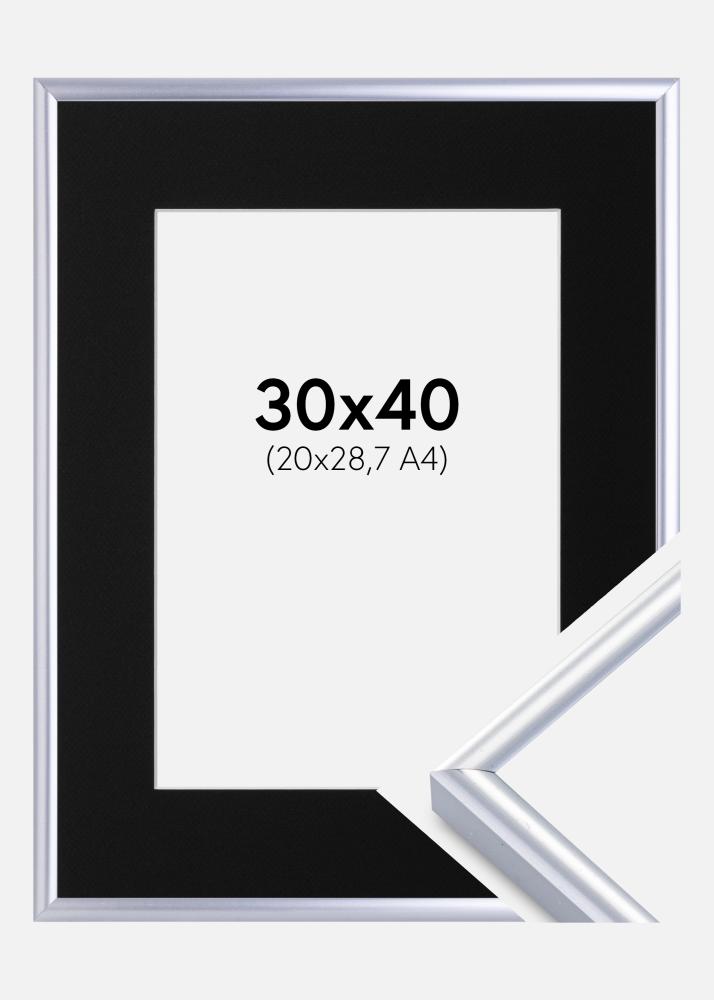 Ramă Victoria Argintiu 30x40 cm - Paspartu Negru 21x29,7 cm (A4)