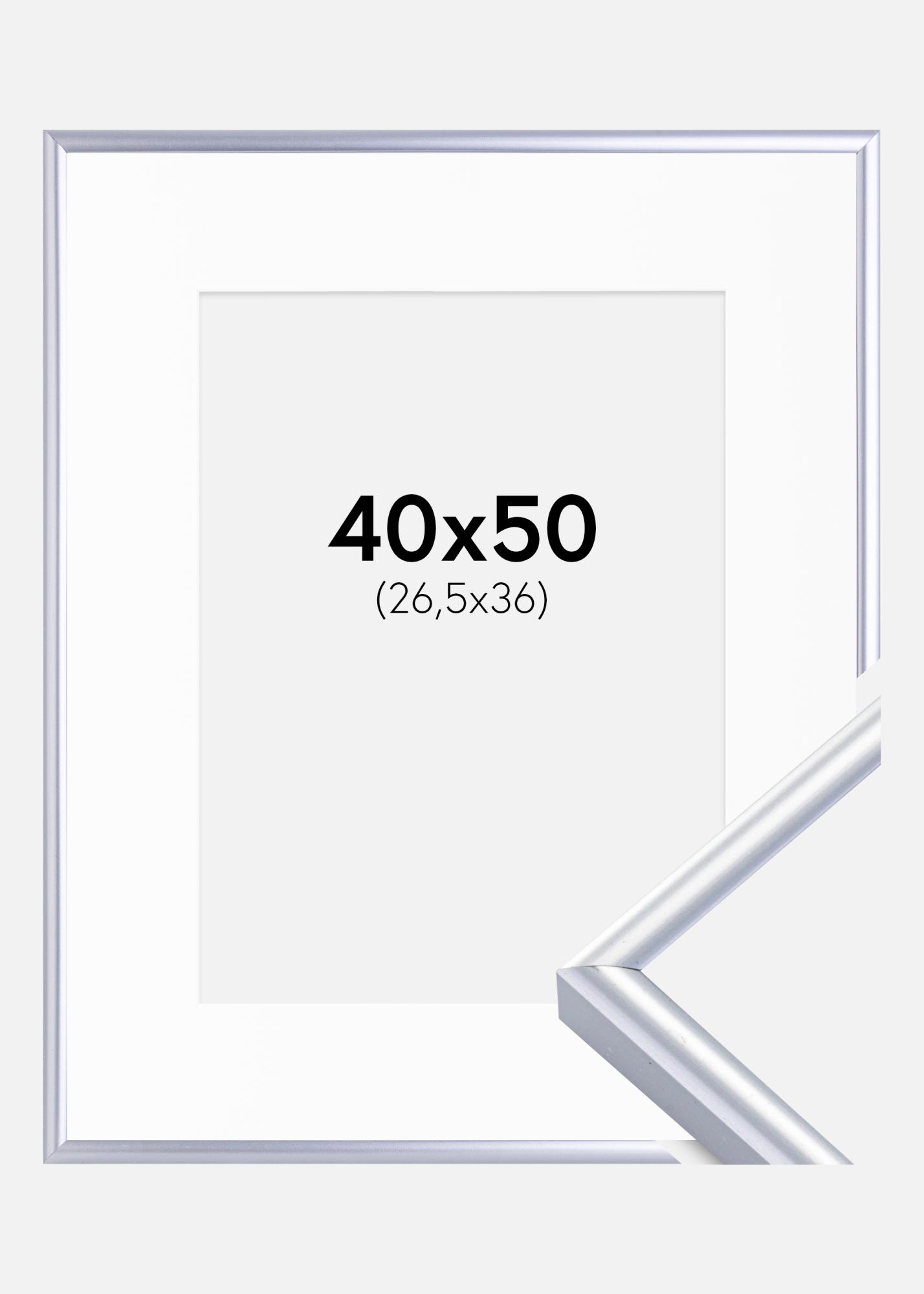 Ramă Victoria Argintiu 40x50 cm - Paspartu Alb 27,5x37 cm