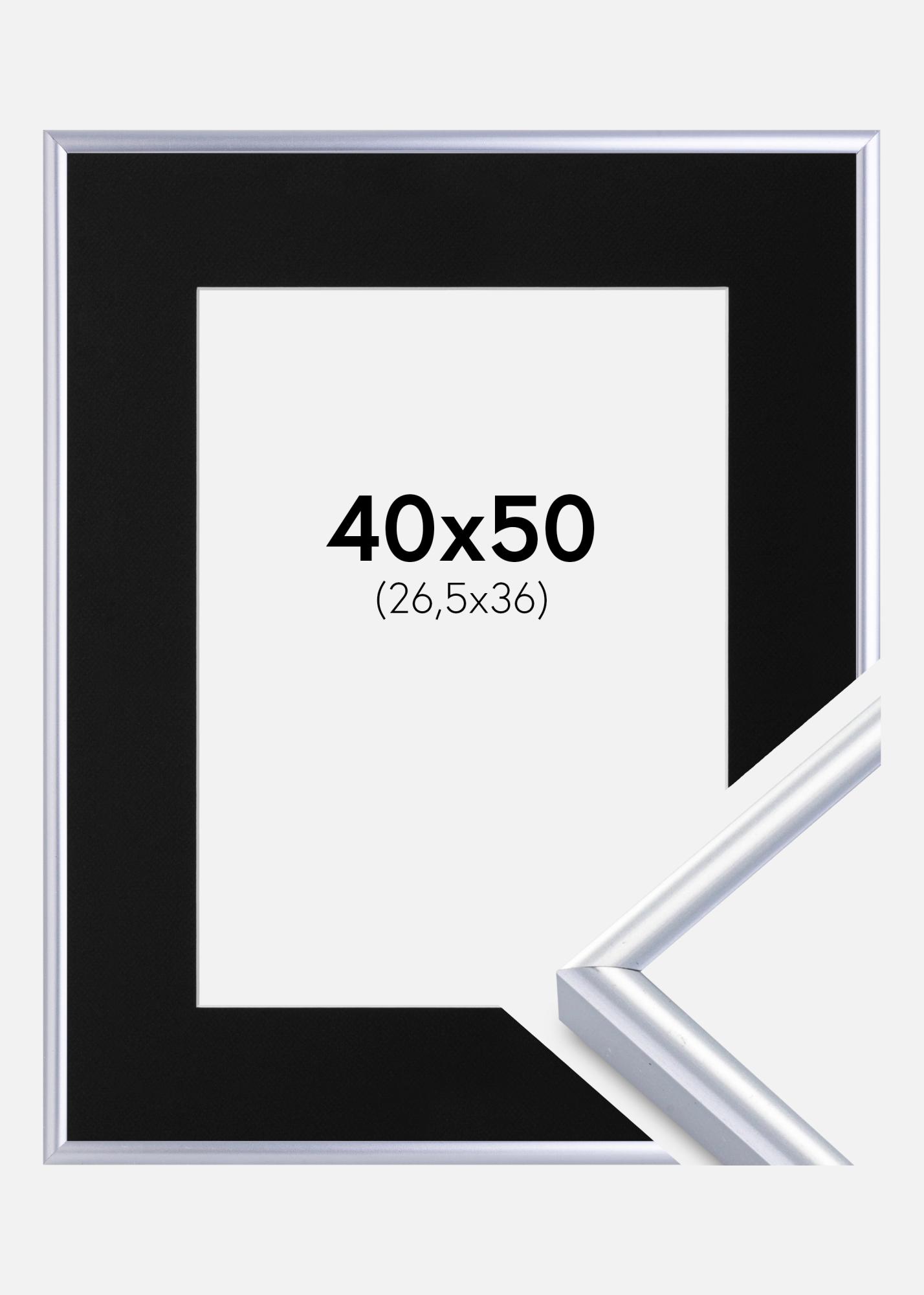 Ramă Victoria Argintiu 40x50 cm - Paspartu Negru 27,5x37 cm