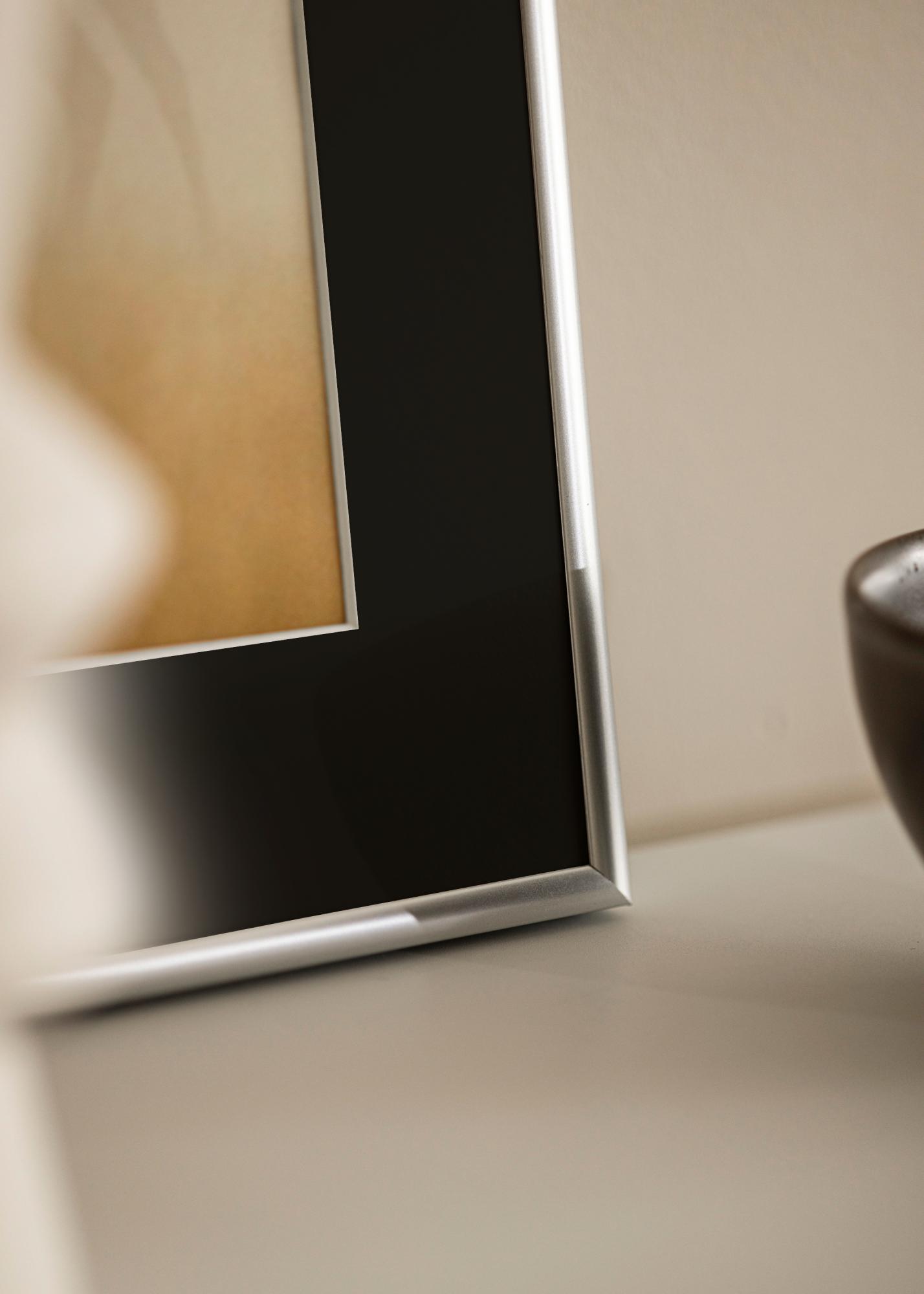 Transformă-ți fotografia sau opera de artă preferată într-o decorațiune de perete elegantă cu această ramă de culoare argintie, cu passepartout negru. Combinația sofisticată dintre rama argintie lucioasă și passepartout-ul negru îndrăzneț oferă o senzație distinctă și modernă imaginii tale de dimensiunea 33x56 cm. Profilul subțire al ramei, cu o lățime de doar 12 mm și o adâncime de 19 mm, completează fără a copleși opera ta de artă.