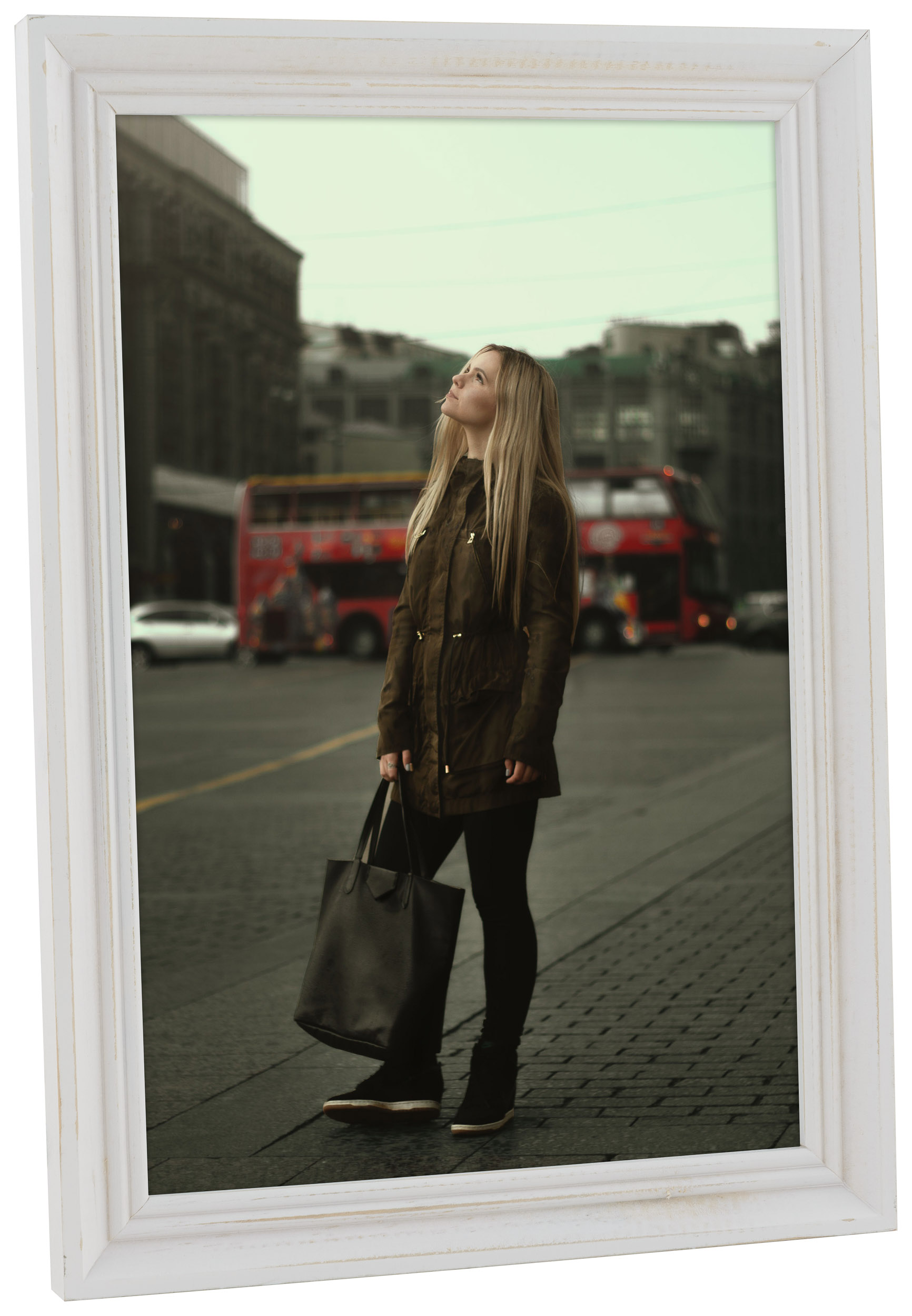 Dacă îți plac accesoriile cu caracter, avem aici o ramă de tablou minunat uzată care adaugă o notă vintage fotografiilor tale. Rama este fabricată din lemn cu o profilare clasică. Este vopsită în alb și tratată pentru a părea îmbătrânită. Este rama perfectă de folosit atunci când, de exemplu, dorești să evidențiezi o fotografie veche sau să încadrezi decorațiuni pe care le-ai creat tu însuți.