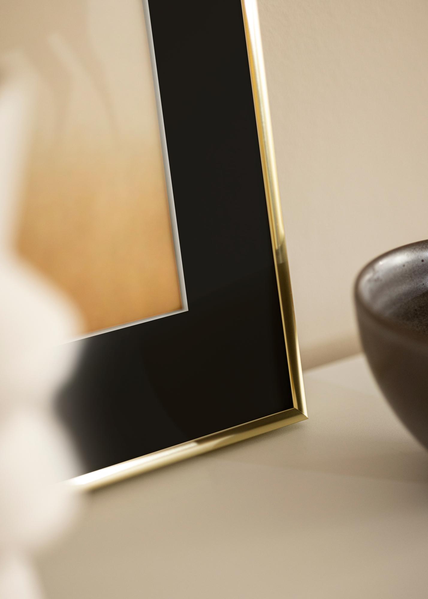 Transformă-ți fotografia preferată sau lucrarea de artă într-o decorare elegantă a peretelui cu rama noastră exclusivă aurie cu passepartout negru. Această ramă sofisticată este perfectă pentru a evidenția o imagine de dimensiunea 20x28 cm și oferă adâncime și un aspect profesional încadrării tale. Rama aurie lucioasă, cu o lățime de 6,5 mm și o adâncime de 17 mm, completează negrul passepartout-ului și creează un contrast izbitor.