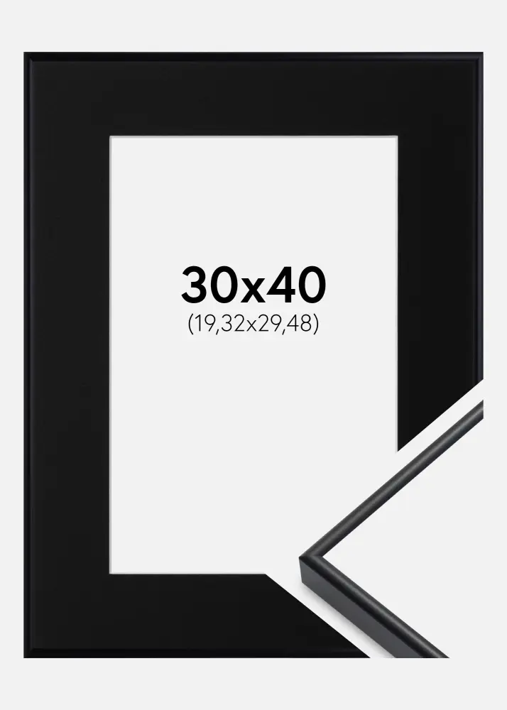 Ramă Visby Negru 30x40 cm - Paspartu Negru 8x12 inches