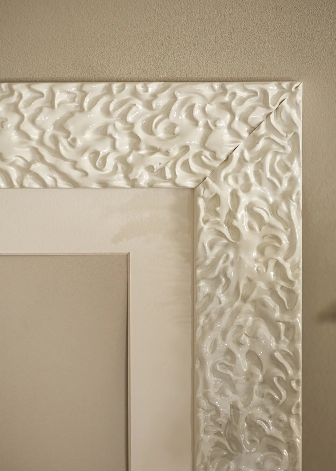 Rama Westminster Alb este un cadru personalizat pentru tablouri realizat în atelierul nostru de rame. Cu suprafața sa albă, lucioasă și modele organice, vii, această ramă foto oferă o senzație modernă și elegantă. Finisajul strălucitor amplifică formele moi și curgătoare, oferind ramei un aspect exclusivist care atrage cu adevărat atenția.