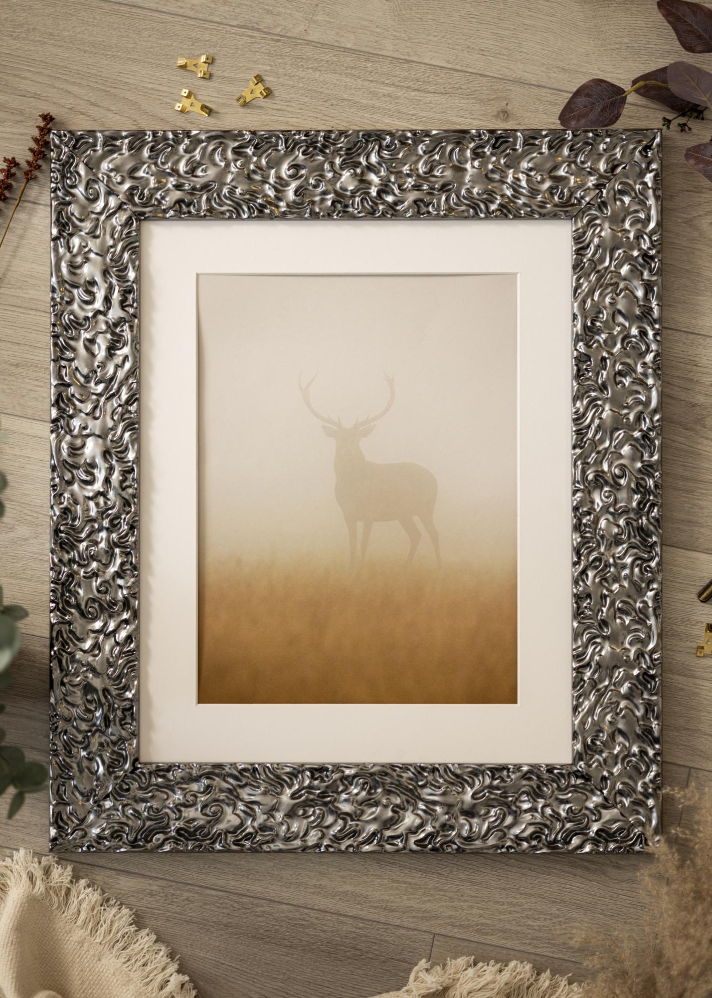 Rama Westminster Crom este o ramă de tablou personalizată, fabricată în propriul nostru atelier de rame, oferindu-ți posibilitatea de a obține o ramă foto care se potrivește perfect pentru imaginea ta. Cu designul său îndrăzneț și elegant într-un finisaj argintiu strălucitor, această ramă devine un element stilat în casa ta. Suprafața reflectantă și modelul detaliat creează o structură vie care pune în valoare imaginea ta într-un mod exclusiv.
