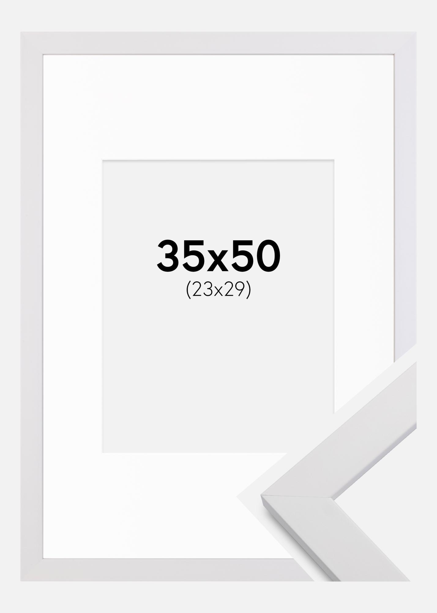 Ramă White Wood 35x50 cm - Paspartu Alb 24x30 cm