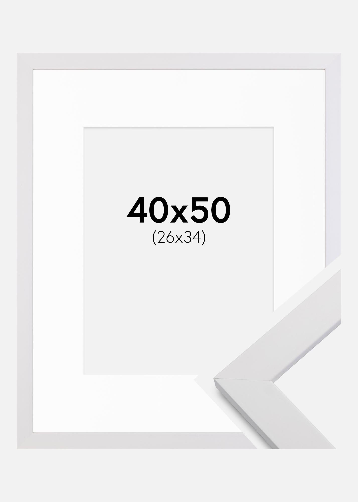 Ramă White Wood 40x50 cm - Paspartu Alb 27x35 cm