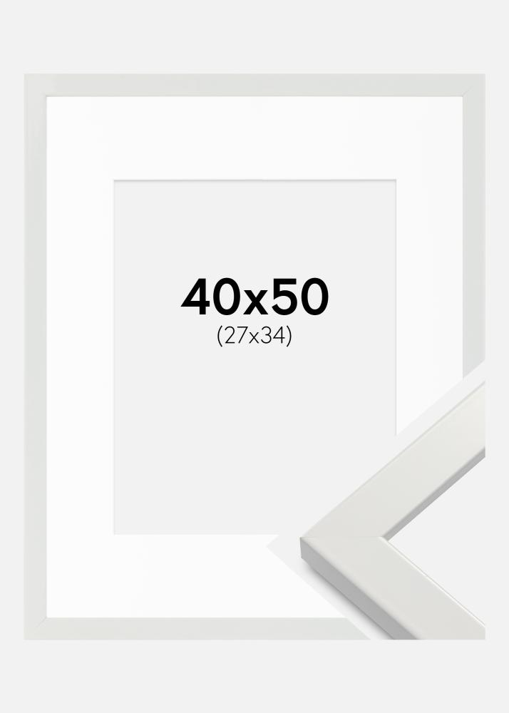 Ramă White Wood Glossy 40x50 cm - Paspartu Alb 28x35 cm