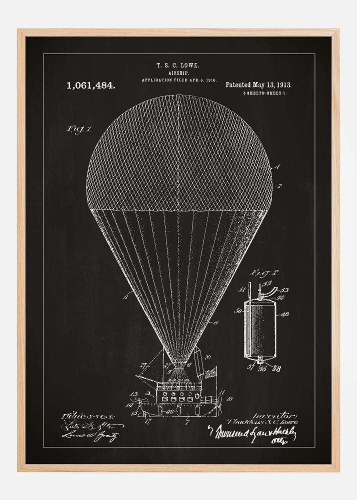 Acest poster cu brevet ne duce înapoi la primele zile ale magiei și aventurii aviației. Cu un brevet datat la 13 mai 1913, cu numărul 1,061,484, această reproducere fidelă a designului lui T. S. Lowe pentru un dirijabil reprezintă un reper tehnologic semnificativ în inovația umană. Este o reprezentare artistică excelentă a încercărilor timpurii de a cuceri cerul.