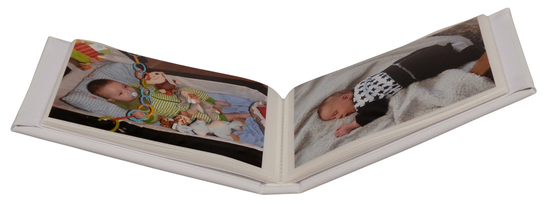 Sense Mini Alb este cu copertele sale îmbrăcate în textile albe un album care se potrivește bine în mână și lasă o impresie plăcută. Albumul are spațiu pentru 40 de fotografii de dimensiuni de până la 11x15 care se montează în buzunare foto practice.
