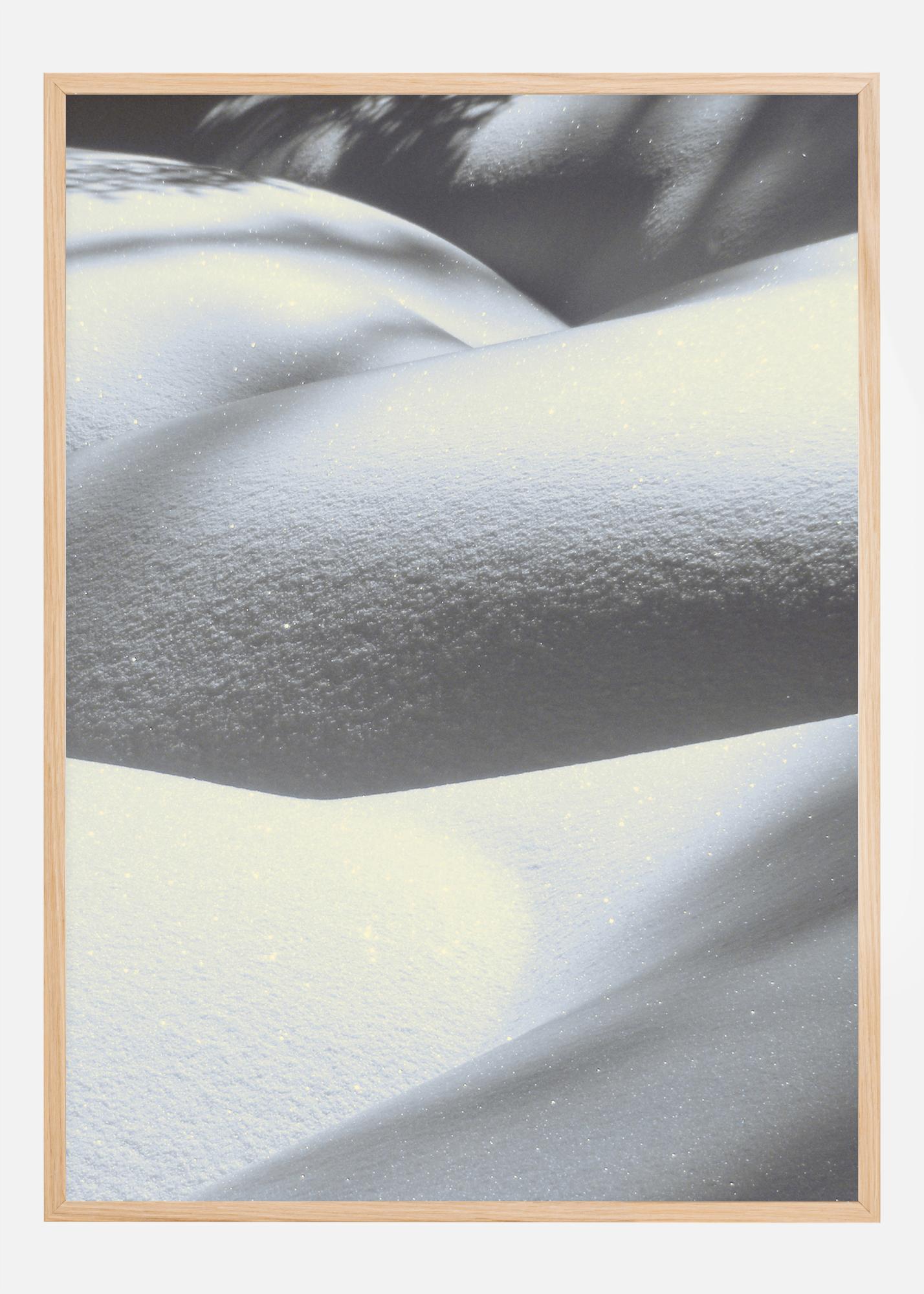 Un poster alb cu zăpadă pe dealurile unduitoare. Această imagine este un amestec de alb și gri atunci când zăpada se rostogolește peste peisaj și creează diferite modele și forme. Zăpada ascunde totul și lasă totul imaginației tale, exact ca această imagine.