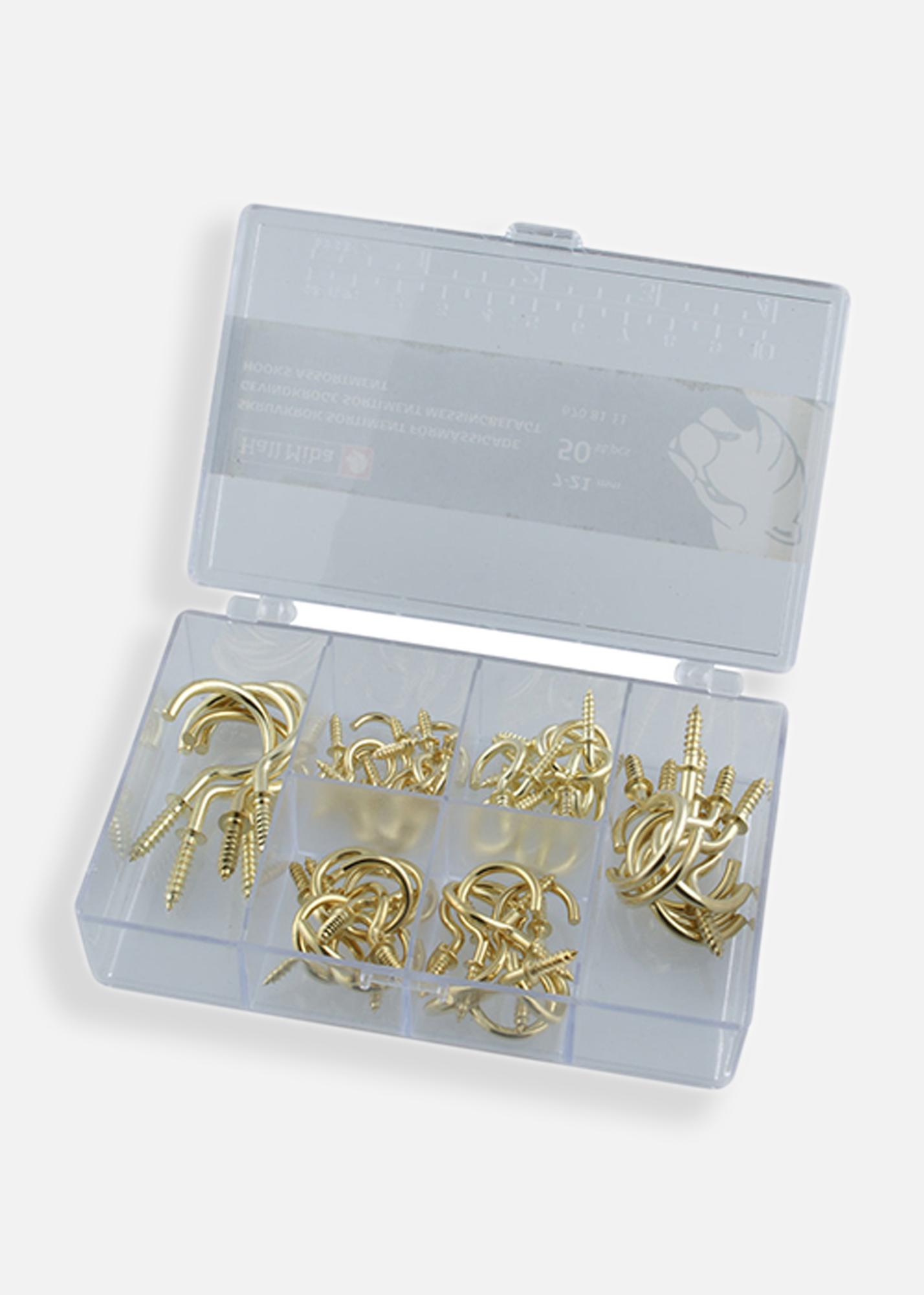 Acest sortiment de cârlige conține 50 de cârlige placate cu alamă, cu dimensiuni între 7-21 mm. Perfect pentru diferite tipuri de agățări în casă, fie că este vorba despre tablouri, decorațiuni sau alte mici detalii. Un set practic pentru cei care doresc o opțiune de montare ușoară și elegantă.