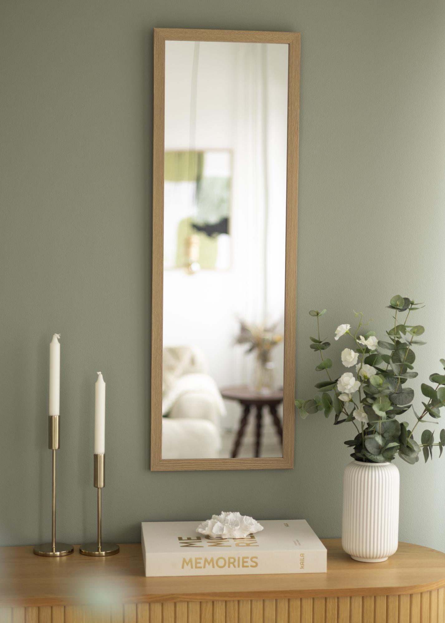 Această Oglindă de ușă are o ramă subțire și modernă din Stejar, care aduce o notă caldă și naturală. Suprafața mată face ca Oglindă să fie discretă, dar totodată adaugă textură și caracter camerei.
