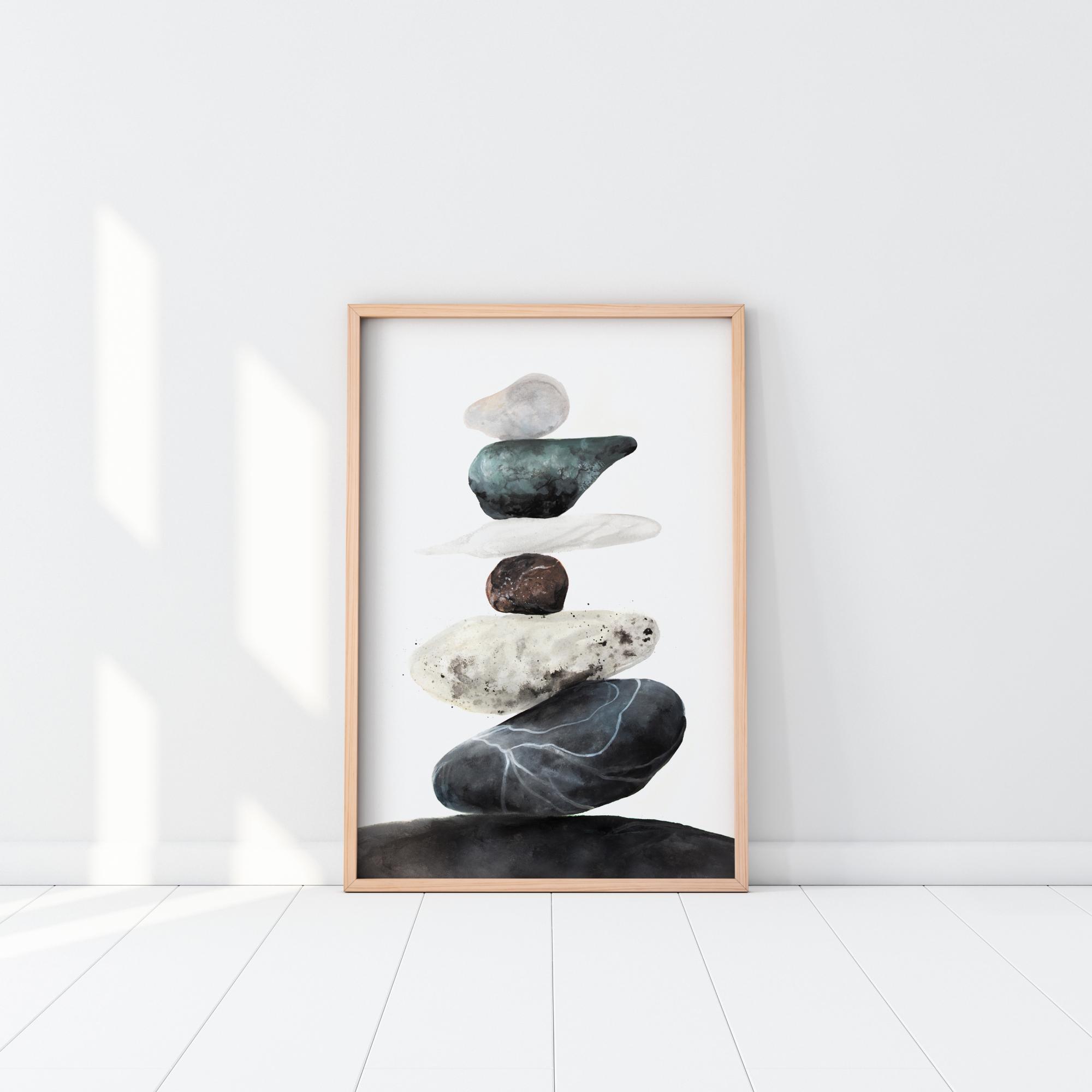 Artă elegantă din pietre pictate în tonuri frumos contrastante, creată de Emelie Bengtsson (EMELIEmaria). Un poster liniștit și armonios, ușor de combinat cu alte favorite pe un perete mai mare de tablouri. Se potrivește majorității locuințelor și stilurilor de decorare.
