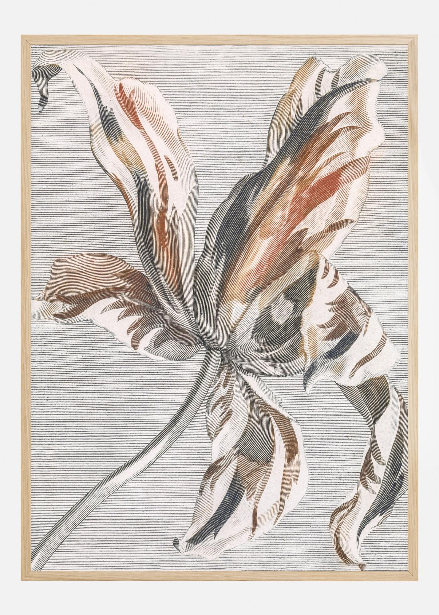 Un poster floral cu o floare îndrăzneață în dungi în roșu, alb și gri. Tușele fluide urmează liniile petalelor pentru a crea viață în lucrare. Potrivește culorile roșii puternice pe peretele unde îl agăți pentru a obține un efect și mai vibrant.