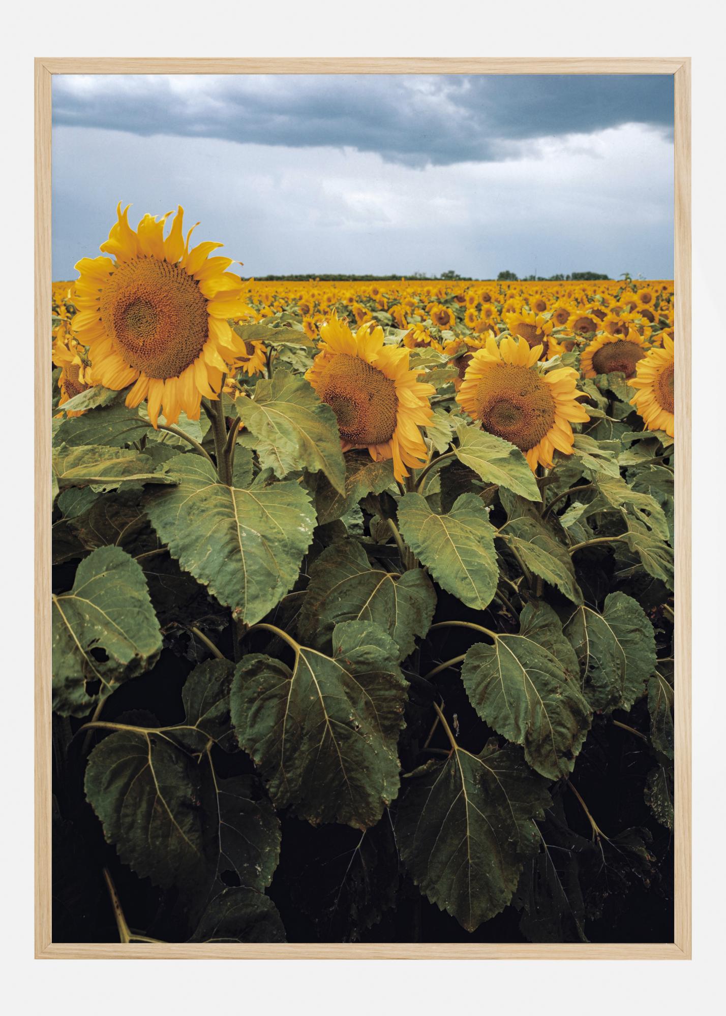 Un poster uimitor cu un câmp mare de floarea-soarelui. Imaginea este plină de tulpinile lungi și verzi și frunzele florilor. Deasupra plutește un ocean de flori de floarea-soarelui galben deschis care se întind către depărtare și cerul albastru. Simte-te ridicat cu această imprimare veselă.